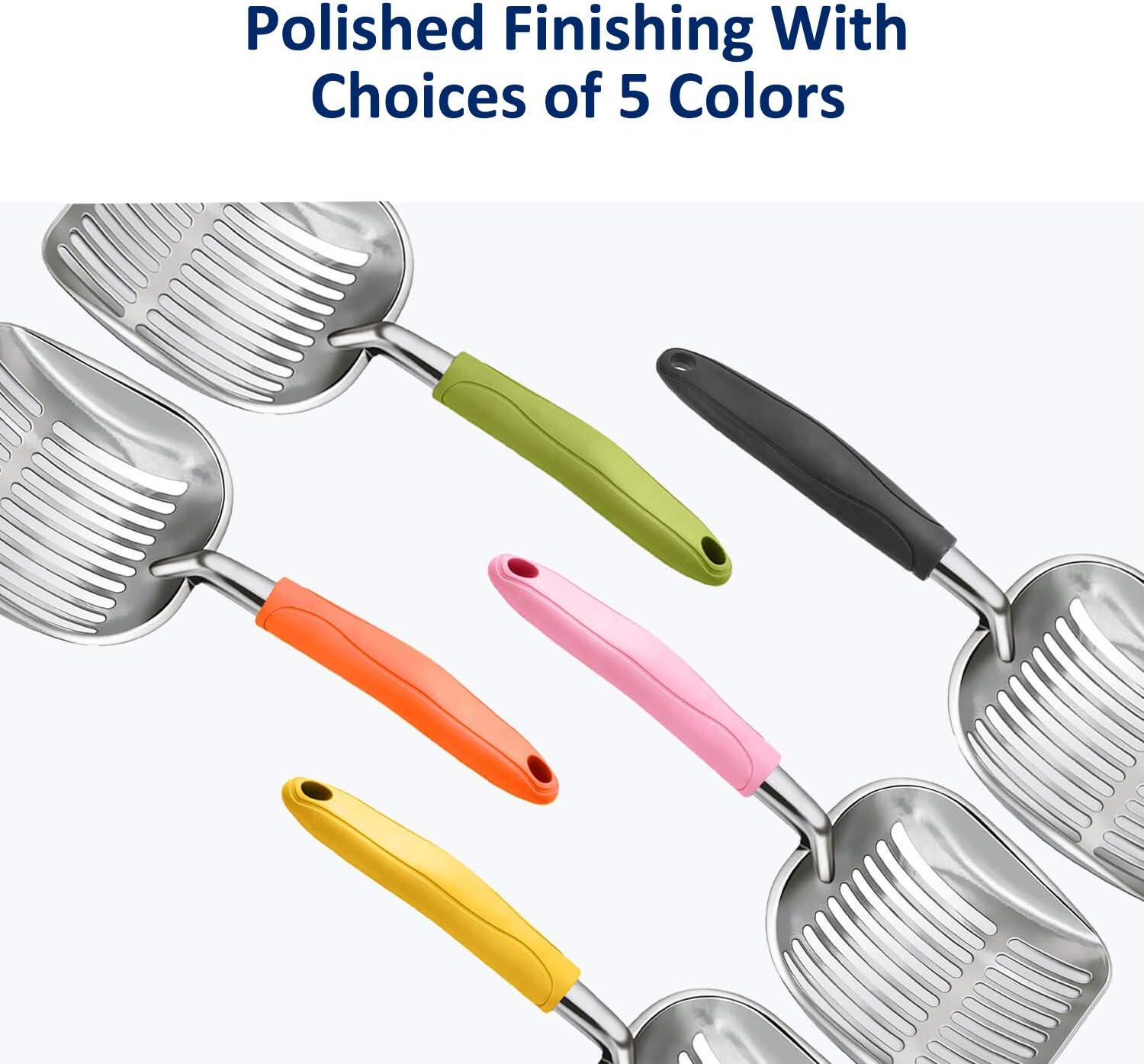 - [Functions]: The sharp edge helps to loosen clumps. The sifter area holds wet clumps and lets clean litter pass through easily. The long handle keeps you away from cat’s waste. It is designed to keep litter box clean and save you loads of cat litter.