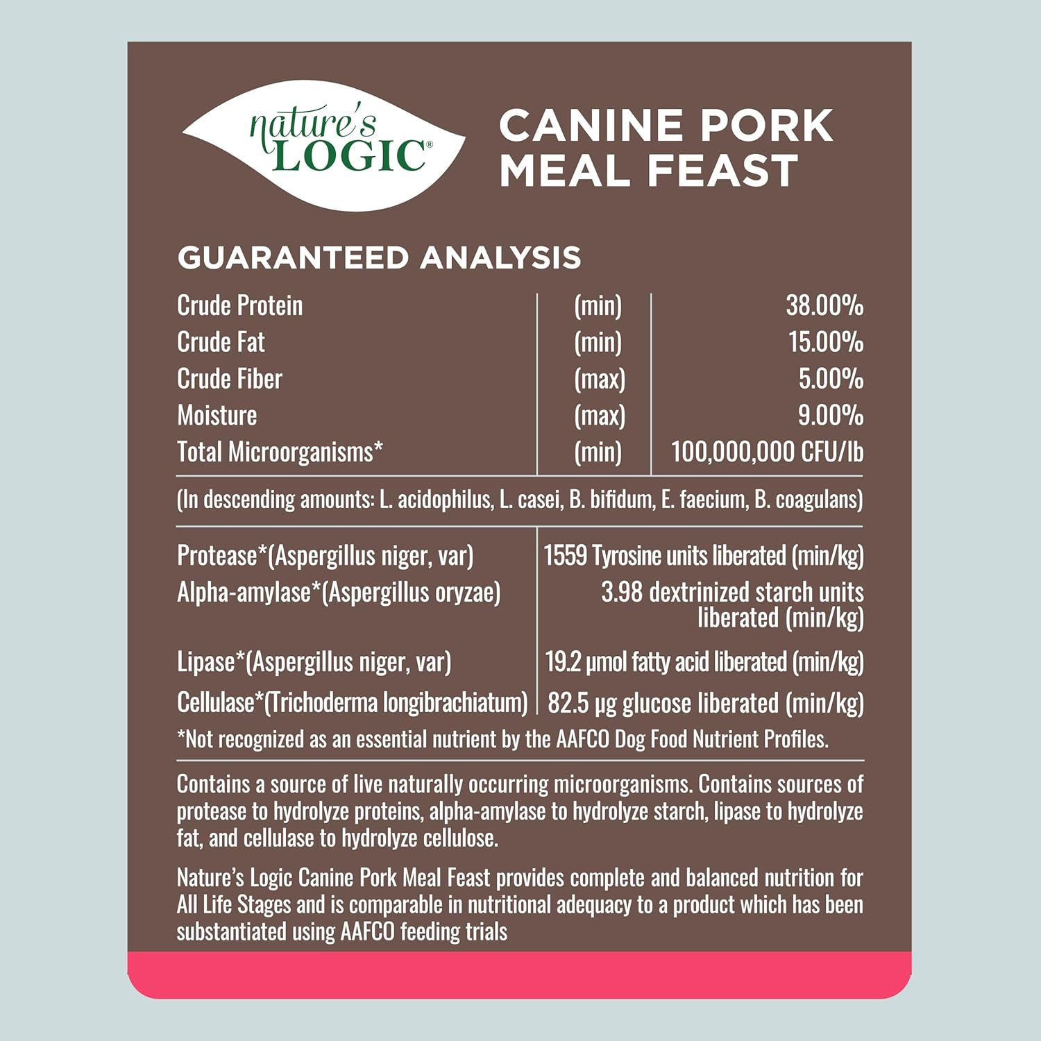 NATURE'S LOGIC Dry Dog Food - 100% Natural - No Synthetics - for All Ages, Sizes, Breeds - Free from Common Allergens, High Protein - Pork Meal Feast, 25lbs