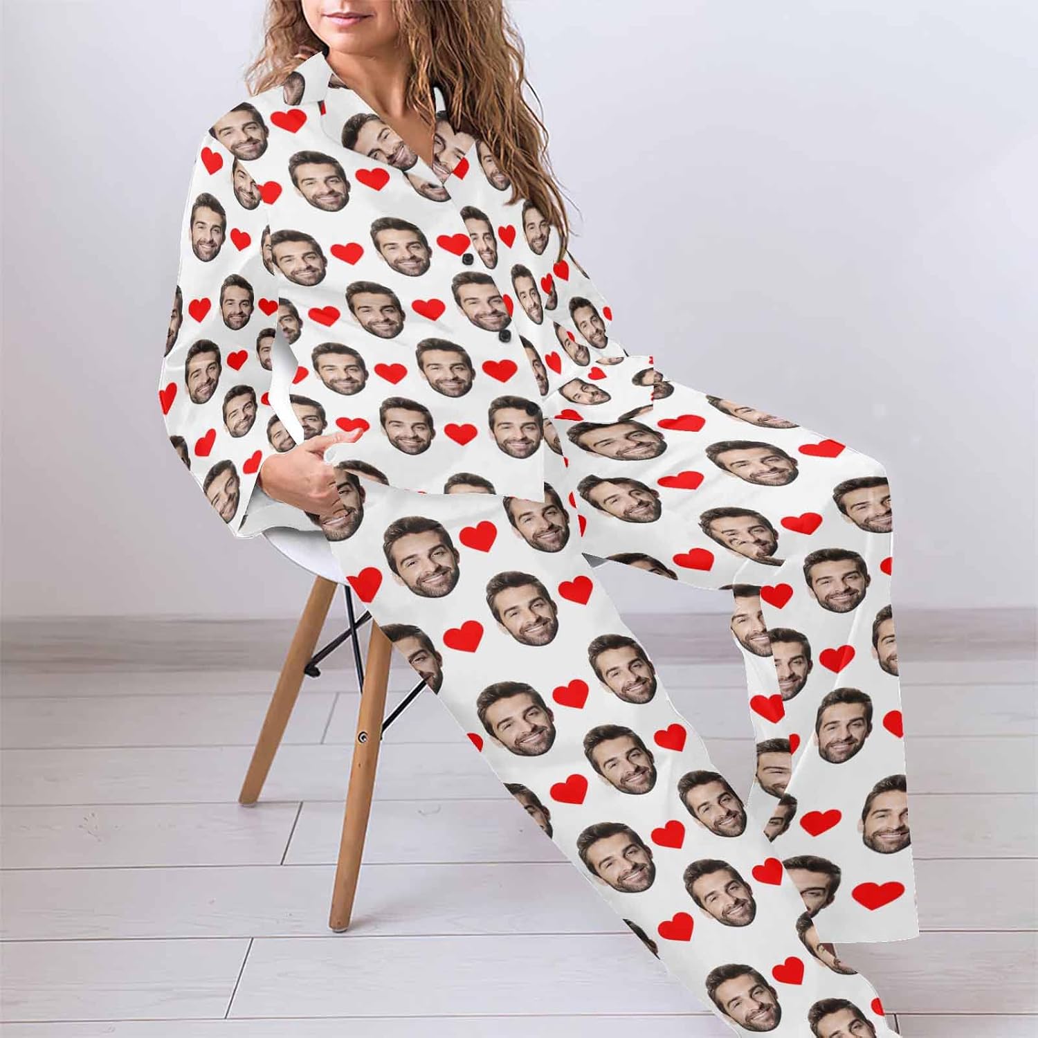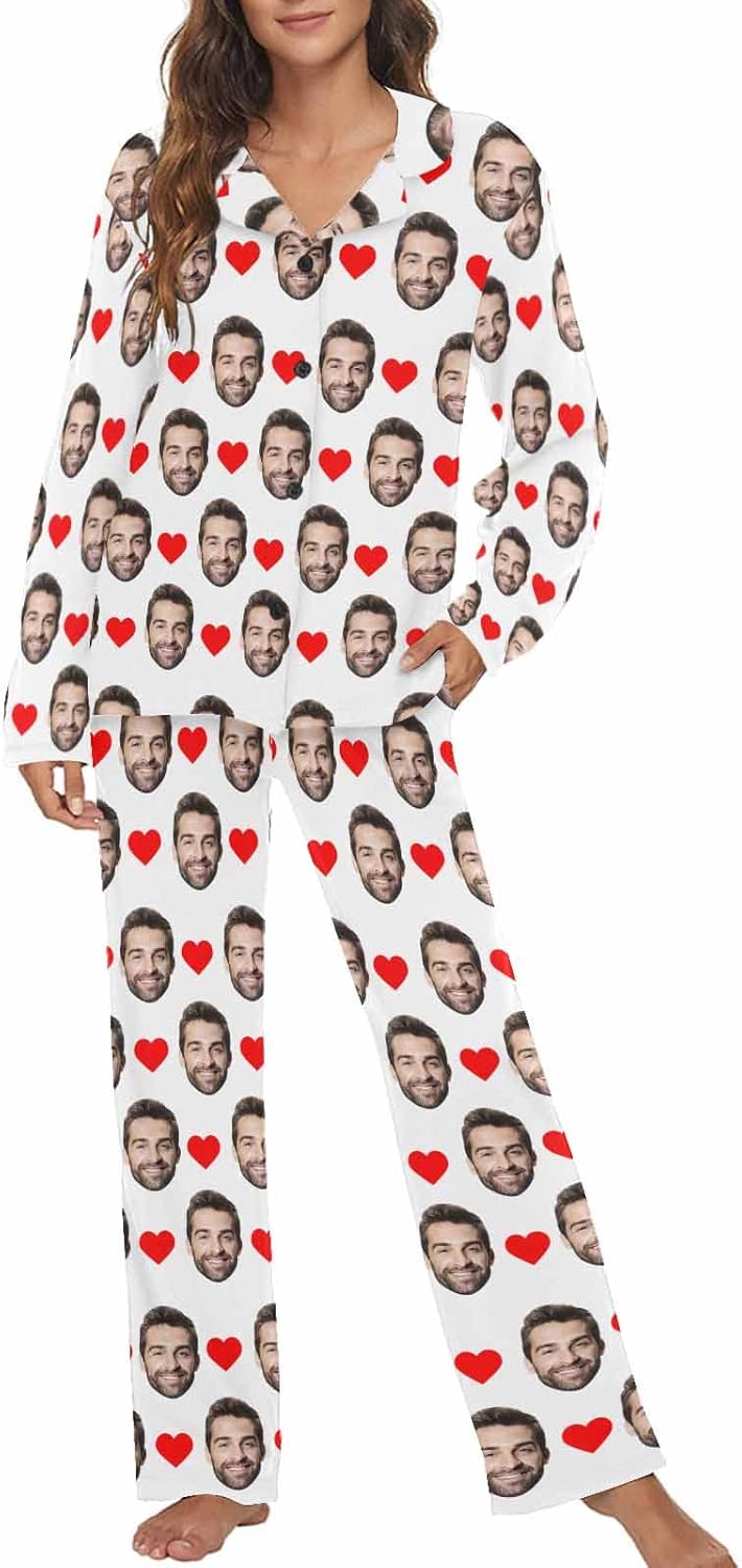 MyPupSocks Custom Face Pajamas for Women Set, Personalized Photo Long Sleepwear XS-XXL