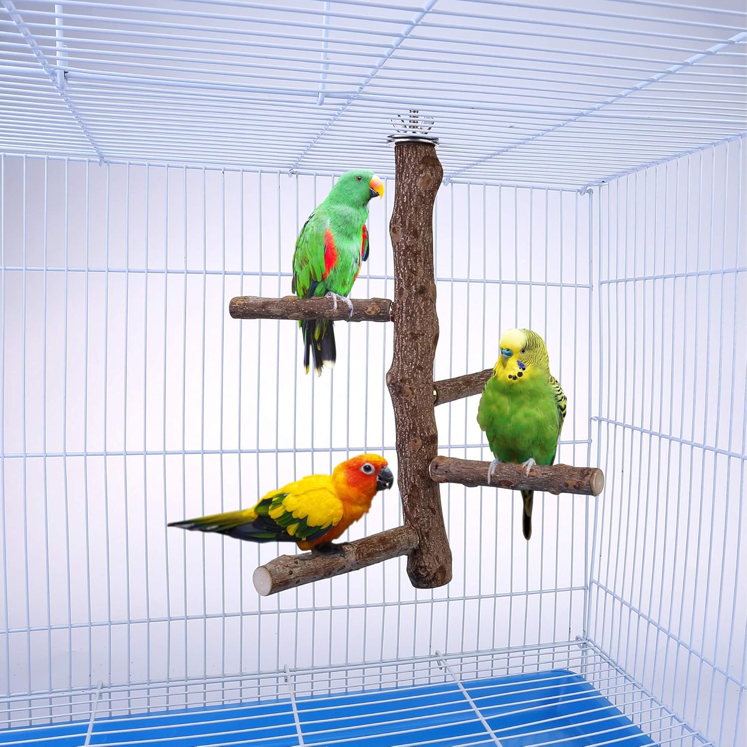 - DESIGN: The parrot perch branche provide a habitat for the parrot to stand or rest in the cage. It allows 3-4 birds to play at the same time, your birds can play and get better communication with each other like wild birds. Perch toy also provides your pet with a nice and cozy place to exercise, relieves boredom and increases activity level.