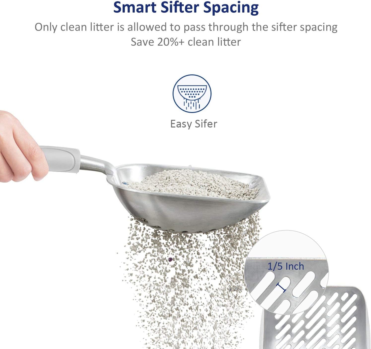 - [Features]: Deep Shovel Sifter was carefully developed by cat owners, WePet made this scooper with heavy duty quality, it’s durable, aluminum alloy body. The body is waterproof and very easy to clean, rust-resistant and corrosion resistant. It’s highly recommended by cat lovers for everyday use.