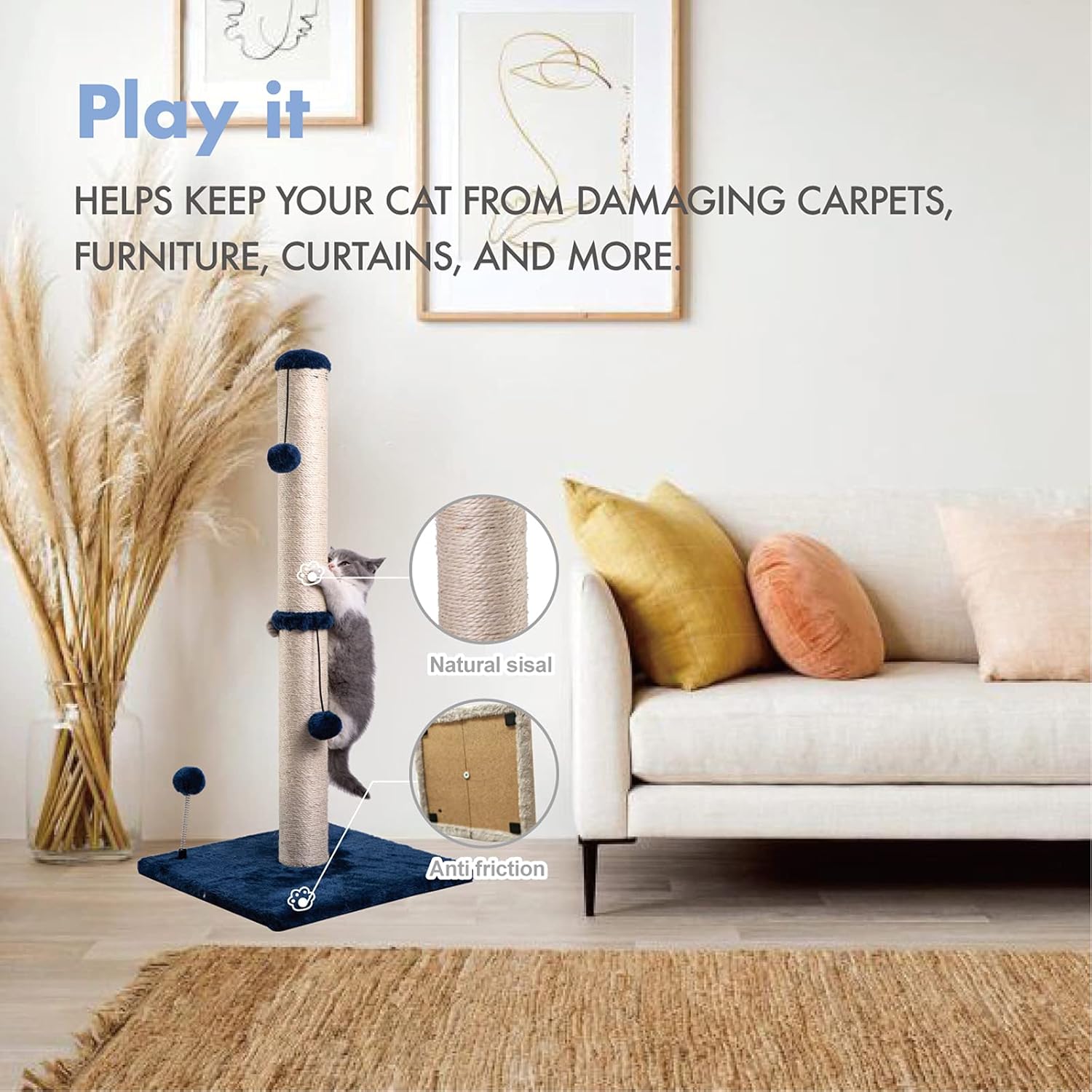 MECOOL 34“ Tall Cat Scratching Post Premium Basics Kitten Scratcher Sisal Scratch Posts Trees with Hanging Ball for Indoor Cats, Navy
