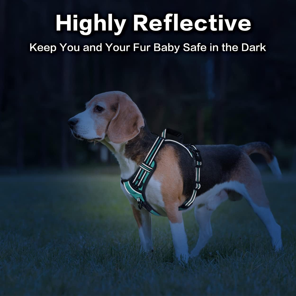 PoyPet No Pull Dog Harness, No Choke Front Clip Reflective Dog Vest with Soft Padded Vertical Handle, 3 Leash Attachments for Small Medium Large Dogs (Mint Blue,M)