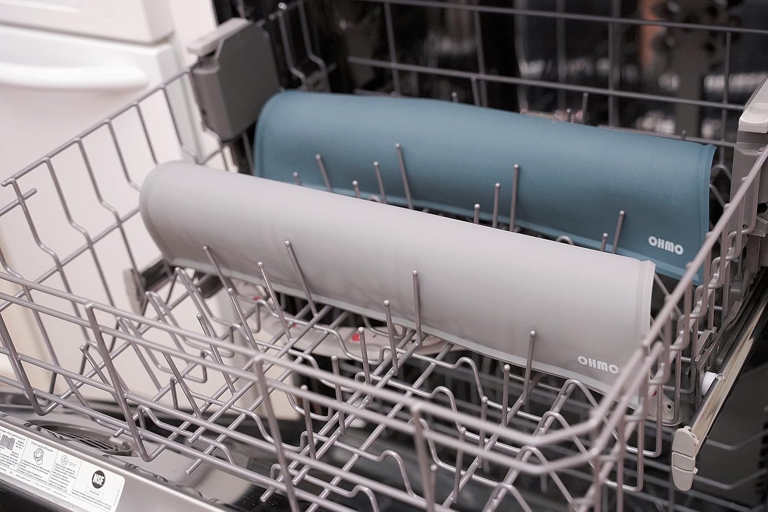 OHMO - Cat Food Mat, Silicone Pet Feeding Mat for Floor Non-Skid Waterproof Dog Water Bowl Tray, Easy to Clean Pet Placemat (Ash, 18 * 9.8'')