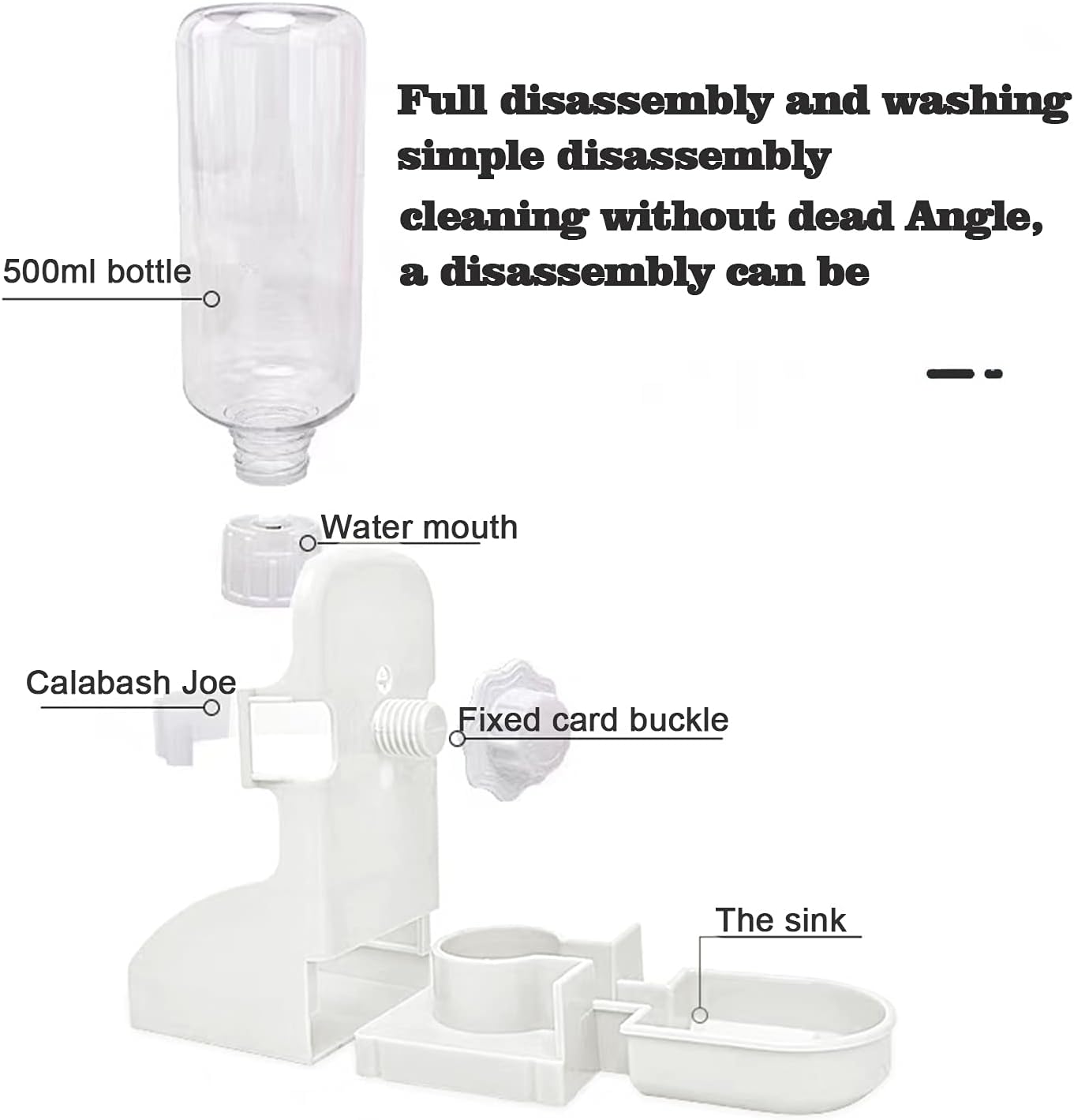 - 【500ml/17oz Water Bottle】Our water dispenser is made of non-toxic and durable plastic. large capacity water feeder, no longer need to worry about your pet has not enough water to drink if you are not home all day.Water bottle holder is suitable for most cages.