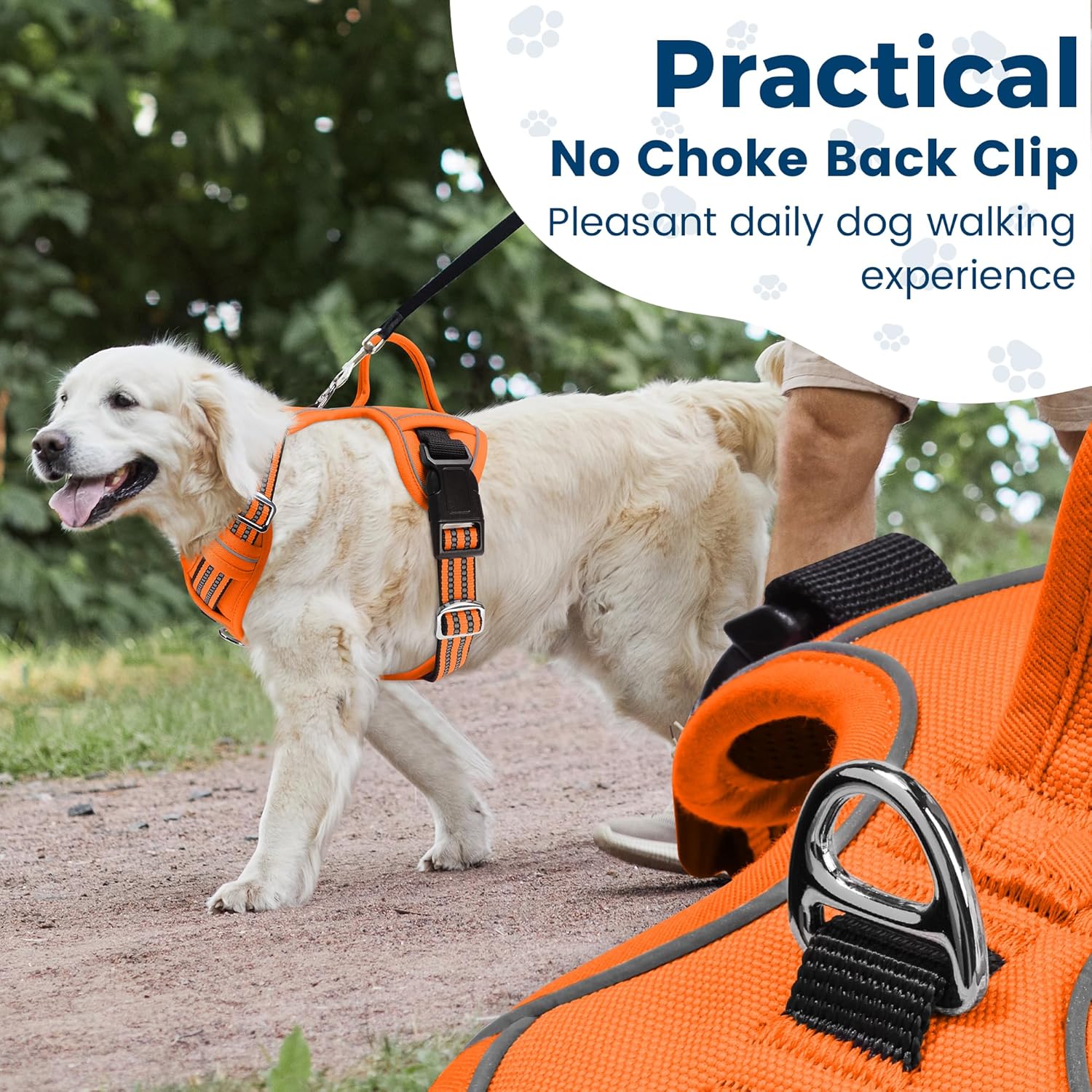 - NO PULL & METAL CLIP: There is a zinc alloy ring both on the chest and back of the harness. When dog pulls, you can tie the chest ring to control your dog. When walking with dog, you can use the back ring. No pull design helps you to control, train, and walk the dog better in your daily life.