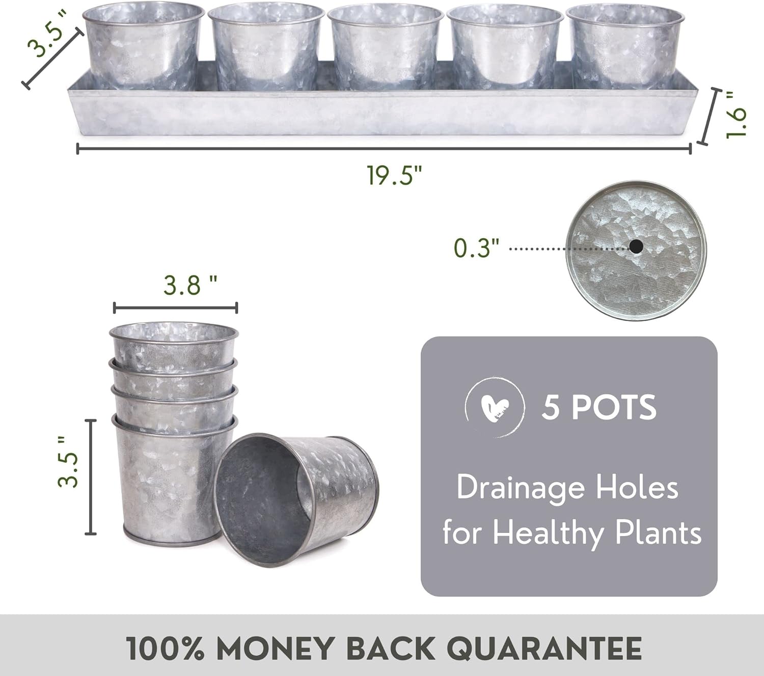 - STYLISH FARMHOUSE DECOR – This stylish and unique set of 5 galvanized garden pots combines practical design and superior functionality. Herb planters for indoor plants is a convenient addition to any chef's or home cook's kitchen