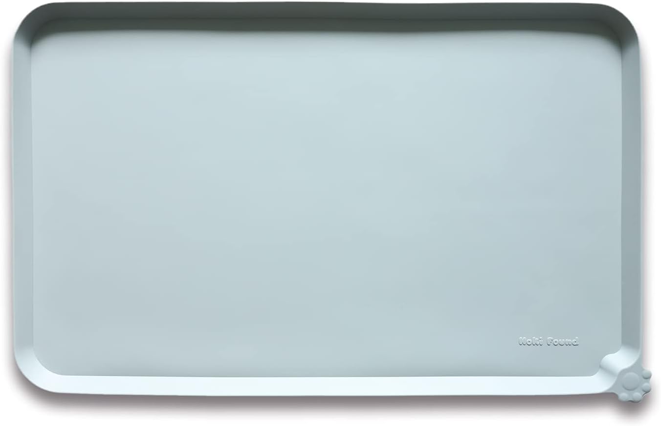 Hoki Found Large Silicone Pet Food Mats Tray - Non Slip Pet Dog Cat Bowl Mats Placemat - Dog Pet Cat Feeding Mat - Waterproof Dog Cat Food Mats -Pet Water Mats for Floors - Battleship