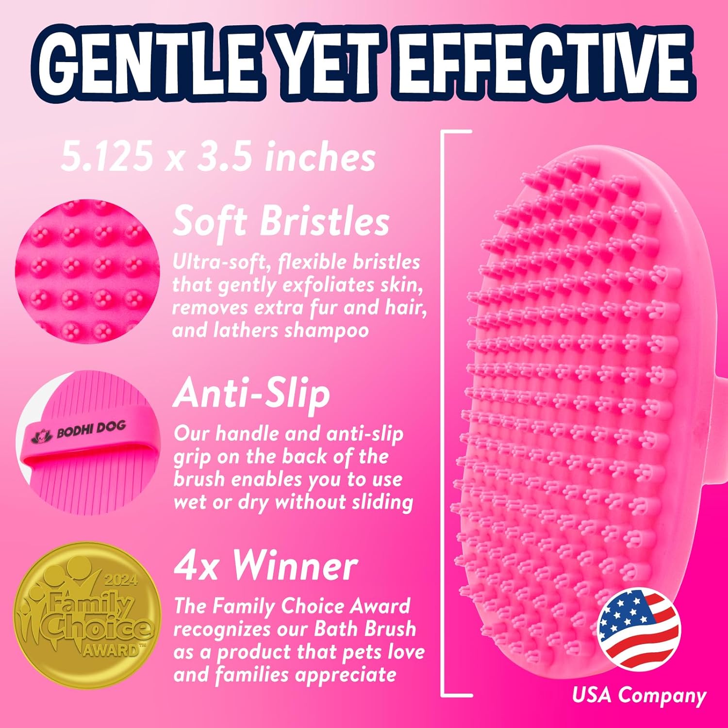Bodhi Dog Shampoo Brush - Pet Grooming & Bath Supplies for Cats and Dog Bath Brush for Long & Short Hair - Premium Scrubber for Shower, Bathing & Massage - (One Pack, Pink)