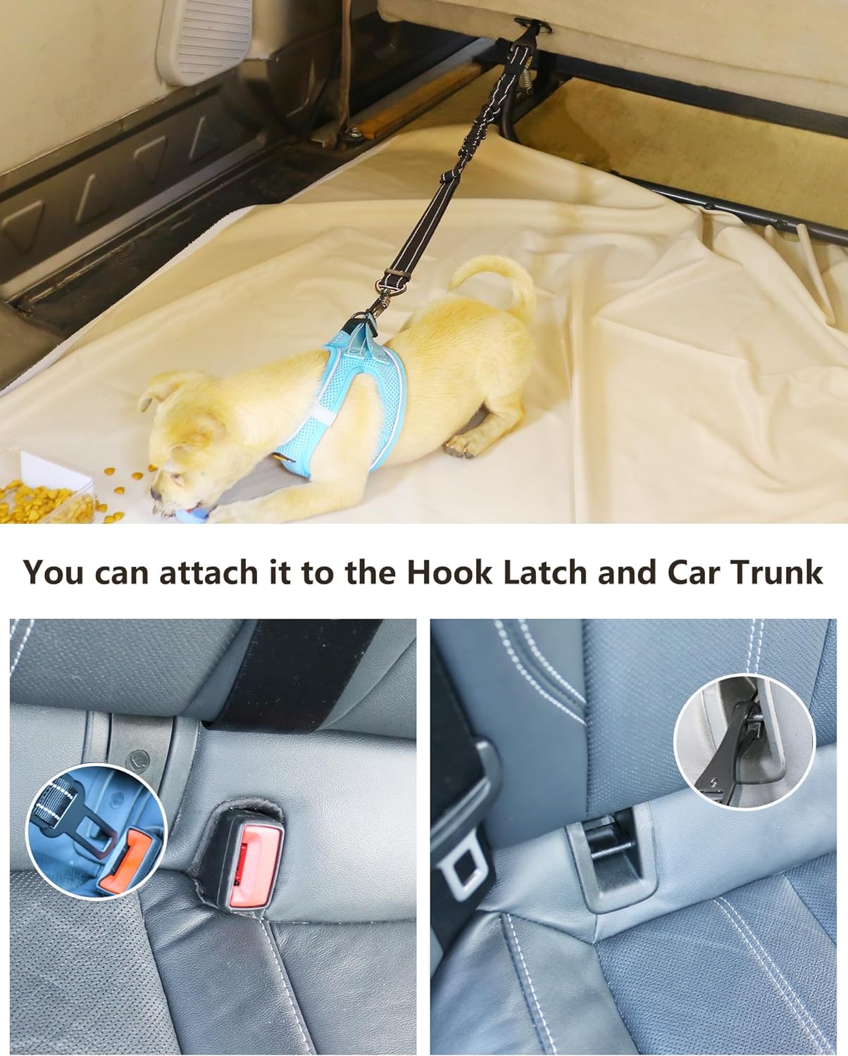 AUBELL Dog Seat Belt for Car,Updated 3-in-1 Adjustable Reflective Bungee Heavy Duty Dog Car Harness Tether with Clip Hook Latch & Buckle,Swivel Zinc Alloy Carabiner,Black