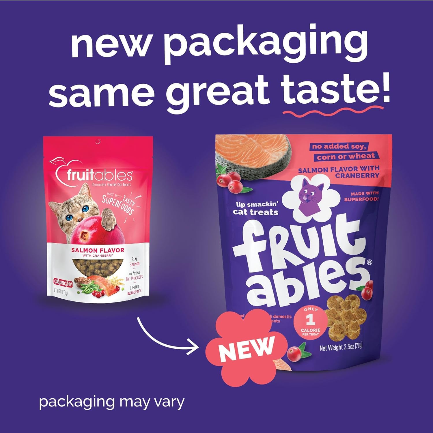 Fruitables Cat Treats Crunchy Cat Treats, Healthy Low Calorie Kitten Snacks, Made Without Wheat, Corn and Soy, Kitten Essentials, Made with Real Salmon and Cranberry, 30 Ounces