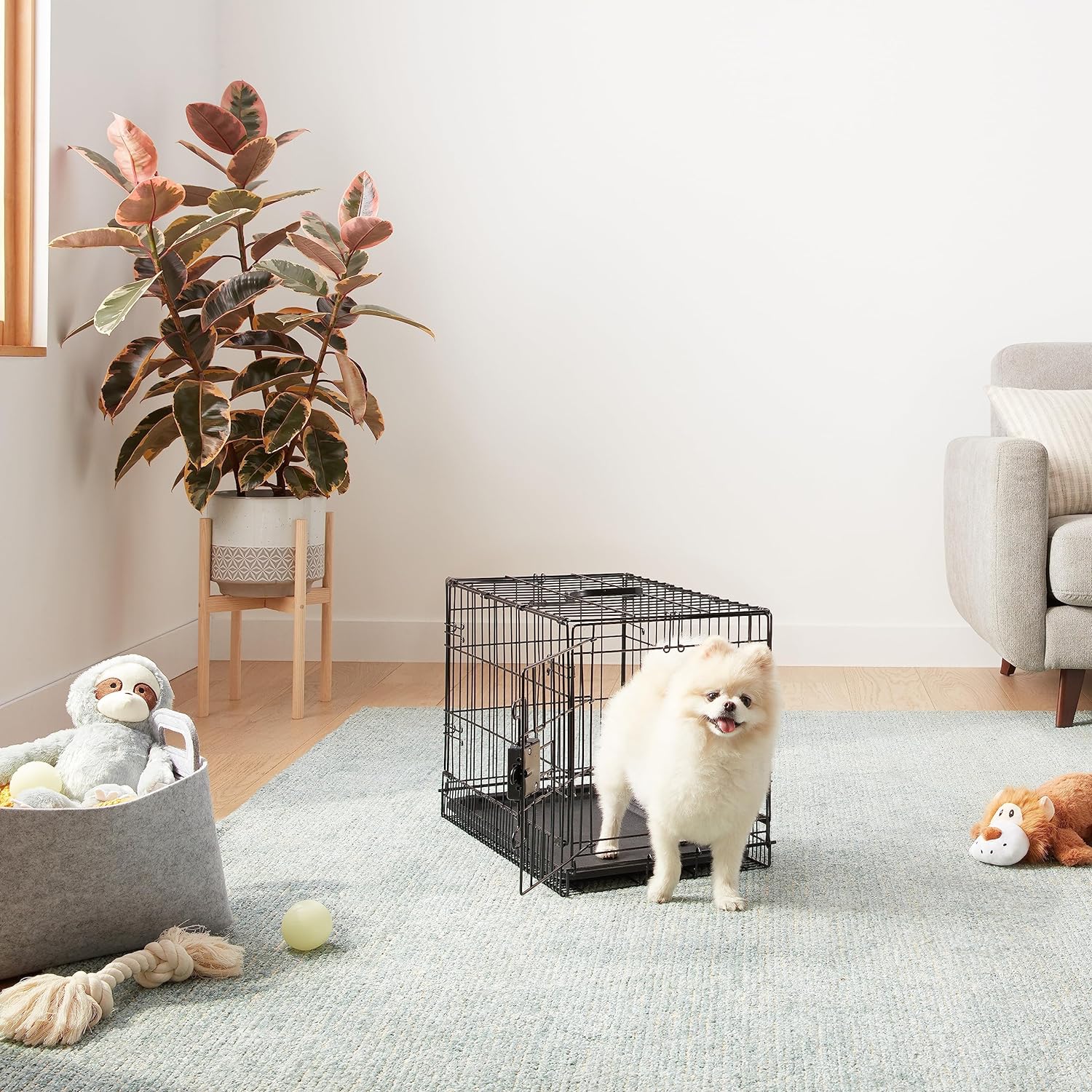 Amazon Basics Durable, Foldable Metal Wire Pet Crate with Tray, Portable and Sturdy for Travel, Single Door, Divider Panel, Perfect Size for Small Dogs, 22 x 13 x 16 in, Black