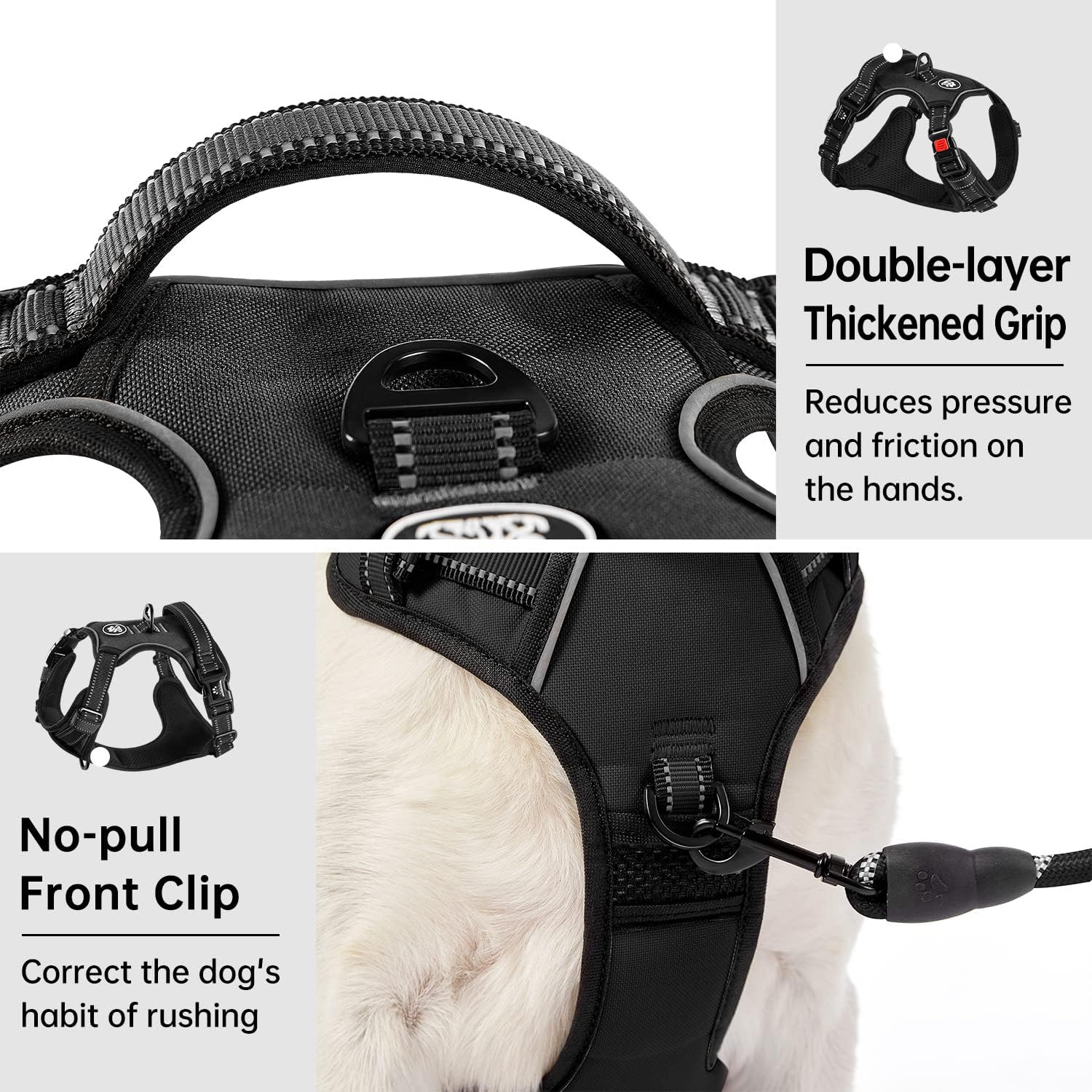 - ≡ NECK WEARING DESIGN ≡ The large dog harness is equipped with 3 buckles on both neck and body position, so you can easily put it on or take it off from the neck side. No more time and effort to put on the harness from the dog's head, and no more worries about hurting your restless dog during the process
