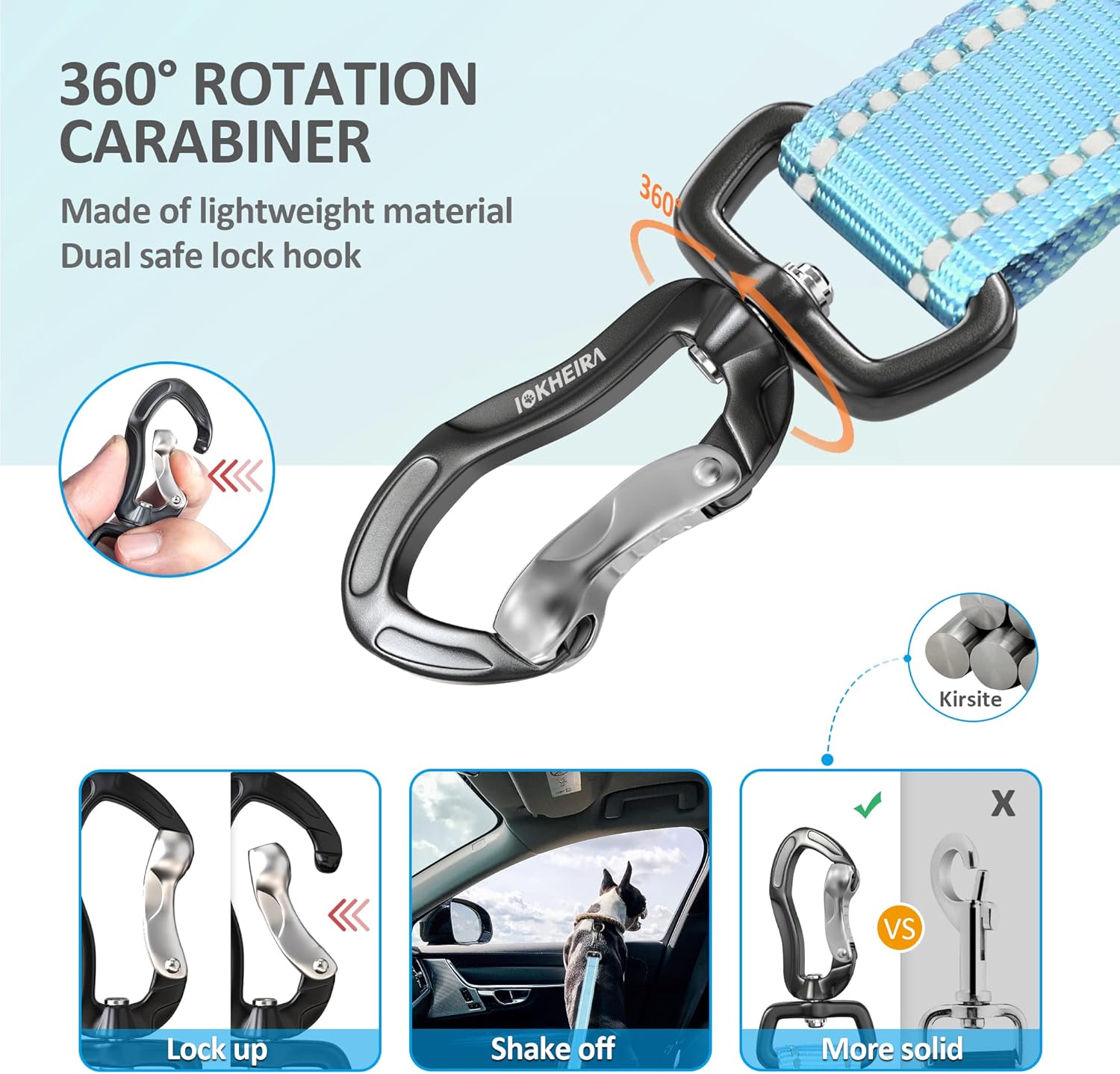 IOKHEIRA Dog Seatbelt, Adjustable, Reflective, Bungee Buffer, Large/Medium/Small, 900lbs, for Dogs