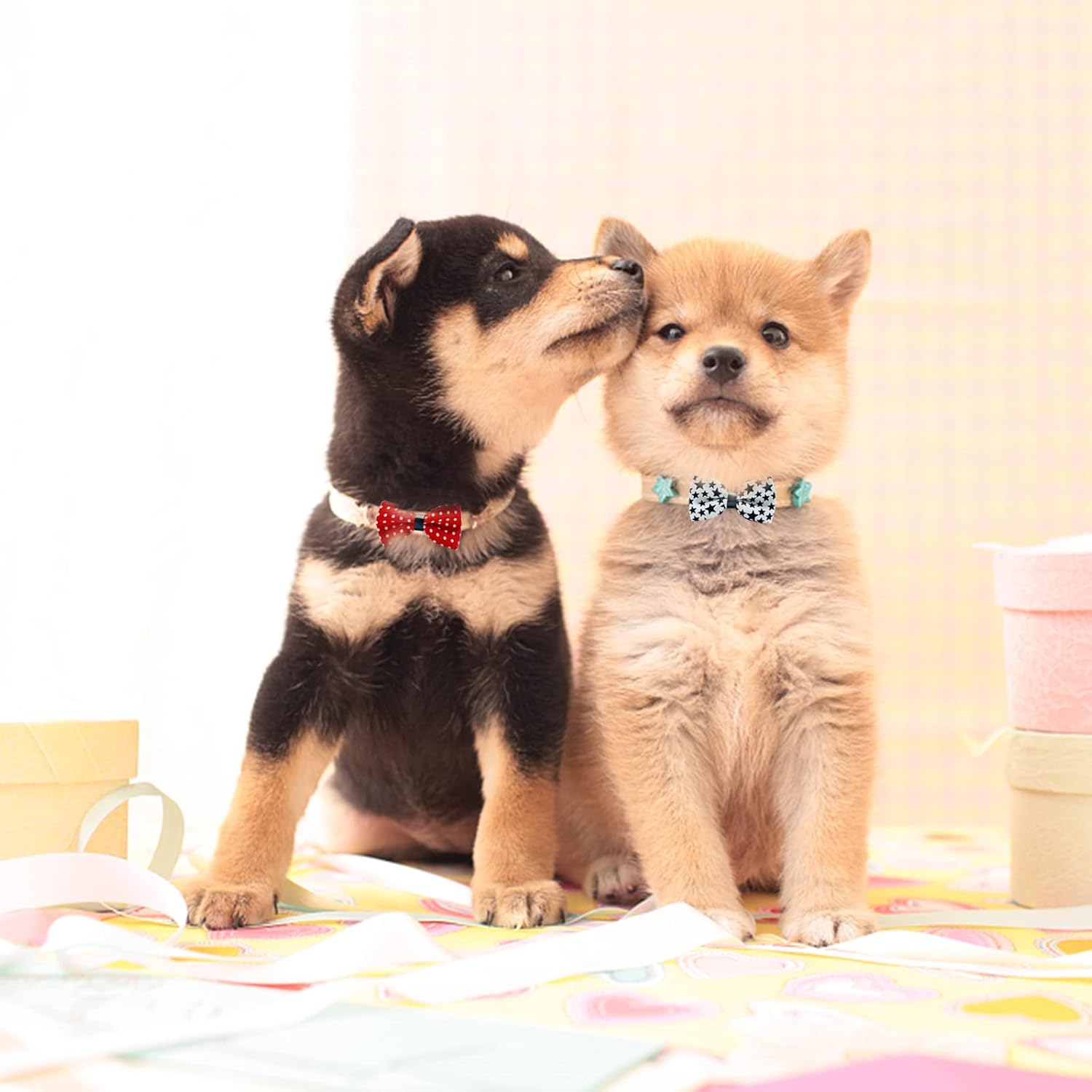 - Our removable pet collar bow ties are very beautiful and perfect for daily playing, walking and birthday party, wedding and festival parties etc. They will make your pets looks more cute and classy.