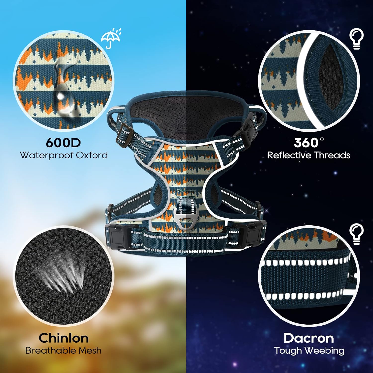 Timos Dog Harness, 3 Snap Buckles No-Pull Soft Padded Dog Vest with 2 Metal Leash Clips, Adjustable Reflective No Choke Pet Harness with Easy Control Handle for Small Dogs, Sunset Valley, S