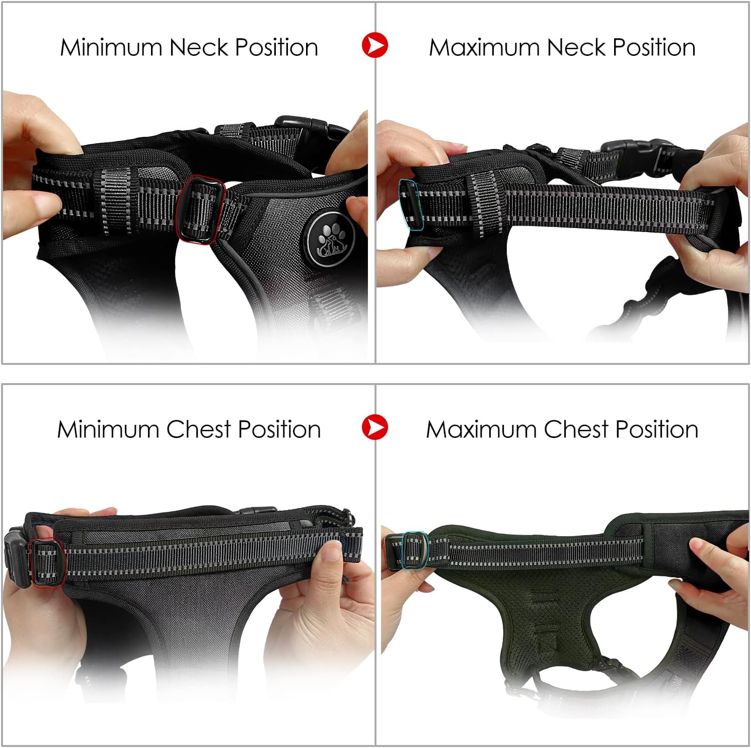 - 【EASY ADJUSTMENT】This no choke dog harness design with 4 fully adjustable straps (2 shoulder and 2 chest straps) which can be adjusted to the most fitting size, prevents the dog from breaking free while maintaining maximum comfort