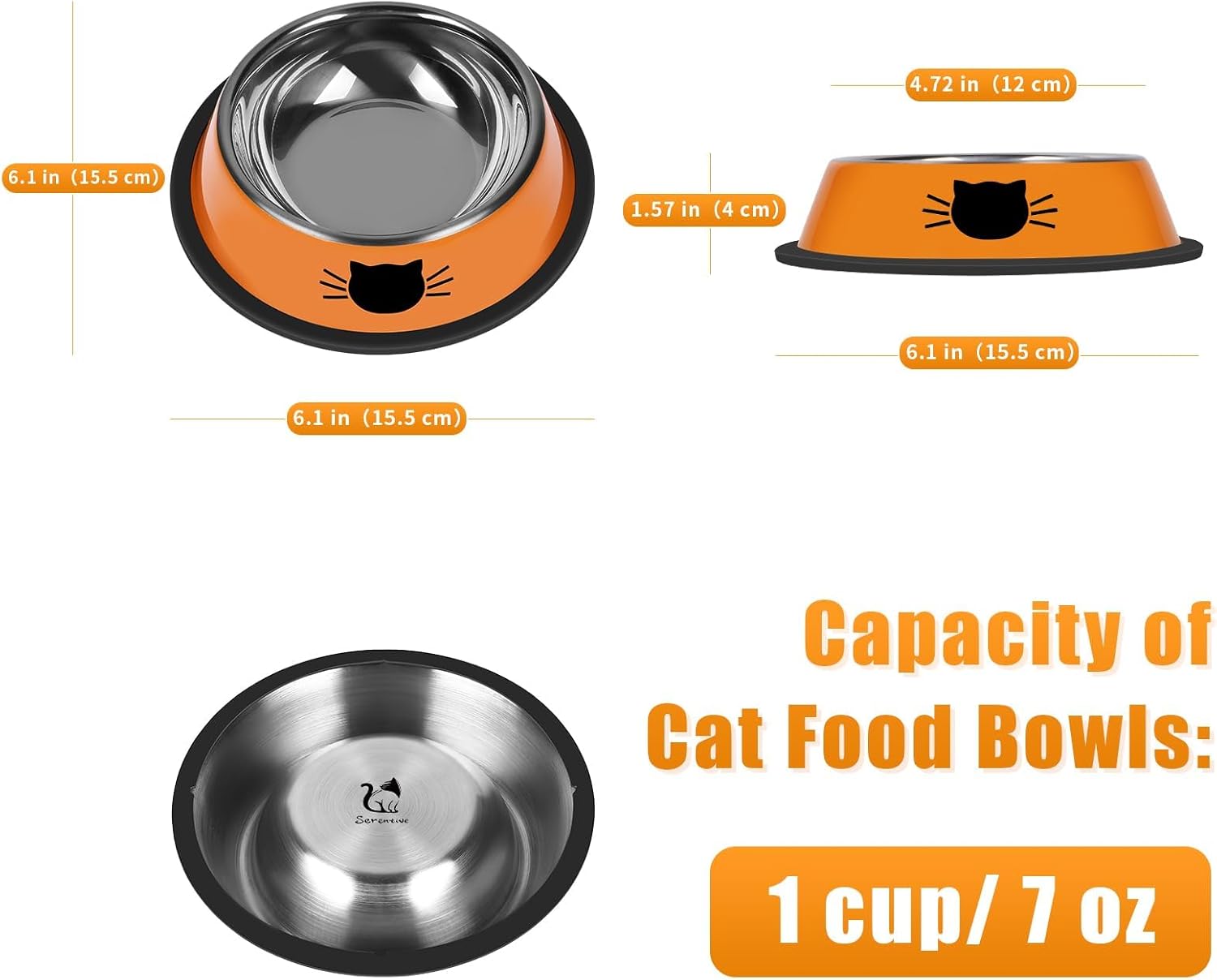 - Cost-Effective Cat Feeding Bowls: Set of 2 bowls, which can both satisfy the requirements of food and water at the same time. Each bowl holds 7 oz of dry kibble, wet snakcs food, treats, or water. The wide and shallow bowl is suitable for the daily dietary needs of cats and small dogs. No more worries about whisker fatigue when kitty eating.