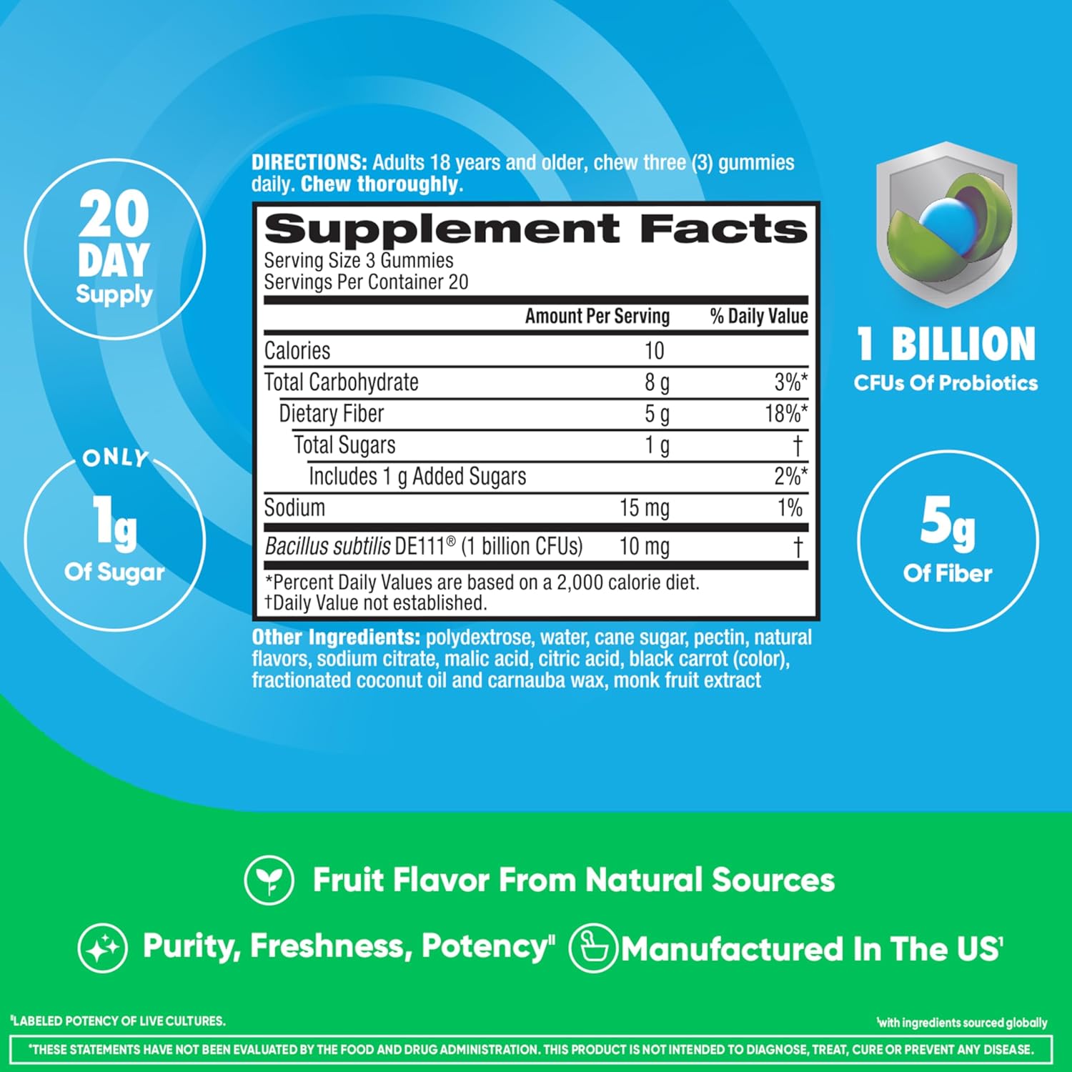 - PREBIOTIC + PROBIOTIC: With five grams of prebiotic fiber plus 1 Billion CFU of bacillus subtillis DE111 to help support digestive health and the growth of healthy bacteria.*