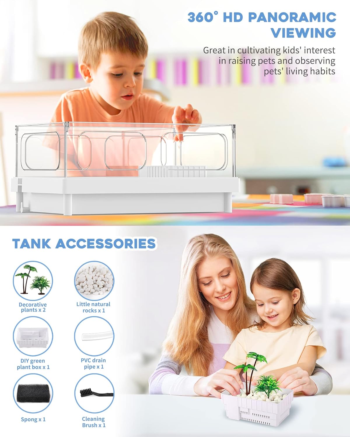 - 【FULL ACCESSORIES & EASY TO INSTALL】Our package includes all accessories you need to set up a basic tank. 4PCS acrylic panels, 1PC tank bottom, 1PC PVC pipe, 1PC sponge, 2PCS decorative plants, 1PC cleaning brush, 1BAG rocks(240g), 1PC manual. The installation is an easy job with our manual inside the pack!