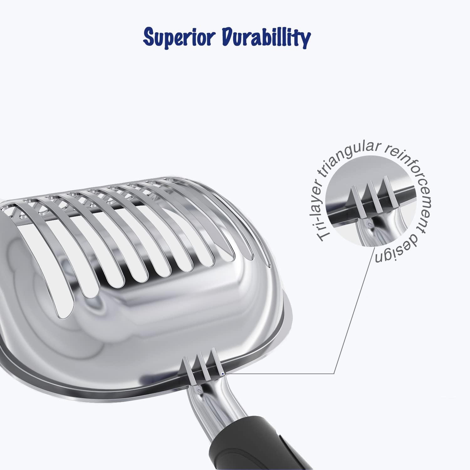- [Features]: WePet made this scooper durable with heavy duty quality. After investigation with thousands thoughtful users, we finally make an improvement of removing the serrated edge as mentioned on reviews. The body is waterproof and very easy to clean, rust-resistant and corrosion resistant. It’s highly recommended by cat lovers for everyday use.
