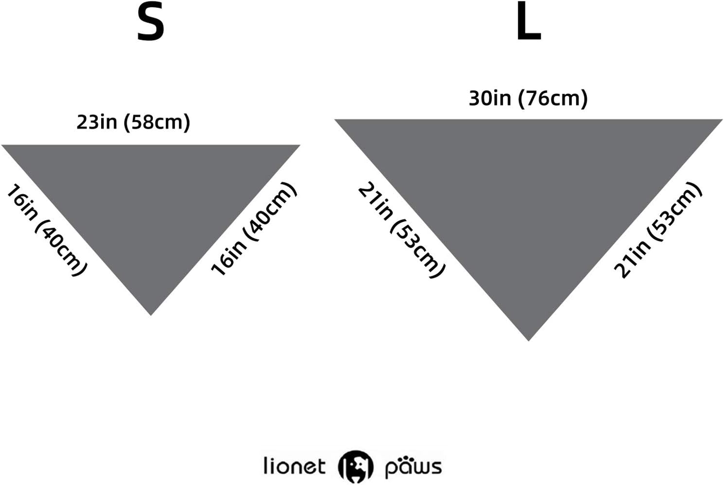- [Triangle Size]: S=23'' x 16'' x 16''(58cm x 40cm x 40cm) Size S is suitable for dog whose neck is less than 16''. L=30'' x 21'' x 21''(76cm x 53cm x 53cm) Size L is suitable for dog whose neck is less than 23''. Please measure the neck girth of your pets before purchasing the item.