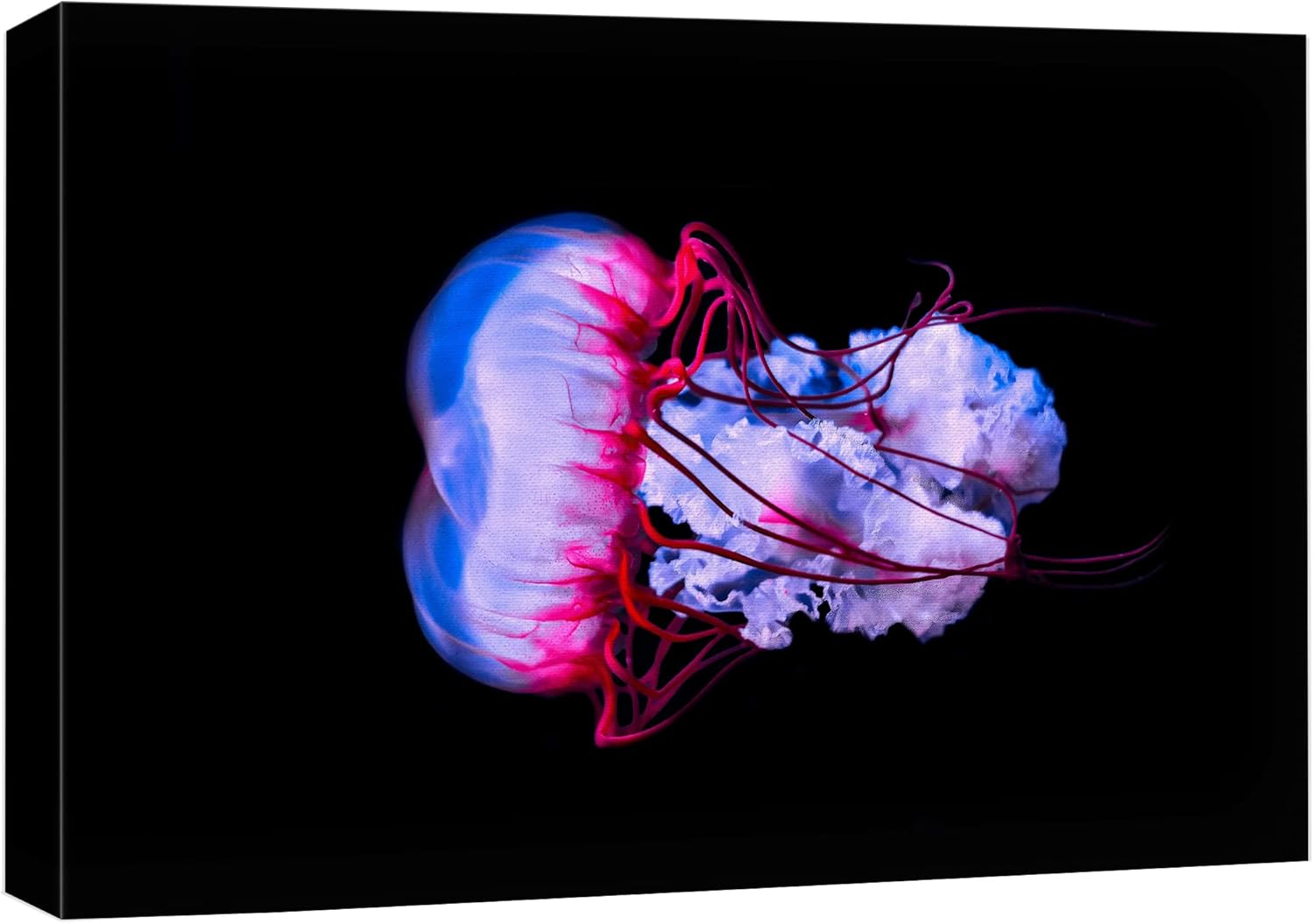 wall26 Canvas Print Wall Art Vibrant Purple Pink Jellyish Dark Ocean Nature Animals Photography Realism Rustic Scenic Landscape Wilderness Earth Colorful for Living Room, Bedroom, Office - 12"x18"