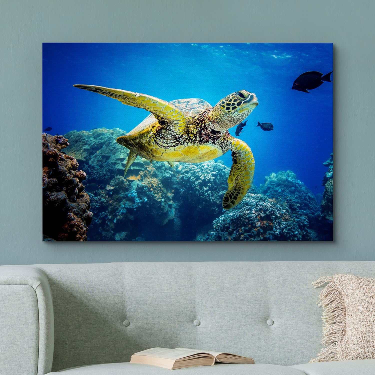 wall26 Canvas Print Wall Art Vibrant Ocean Underwater Swimming Turtle Nature Animals Photography Realism Rustic Scenic Landscape Wilderness Earth Colorful for Living Room, Bedroom, Office - 32"x48"