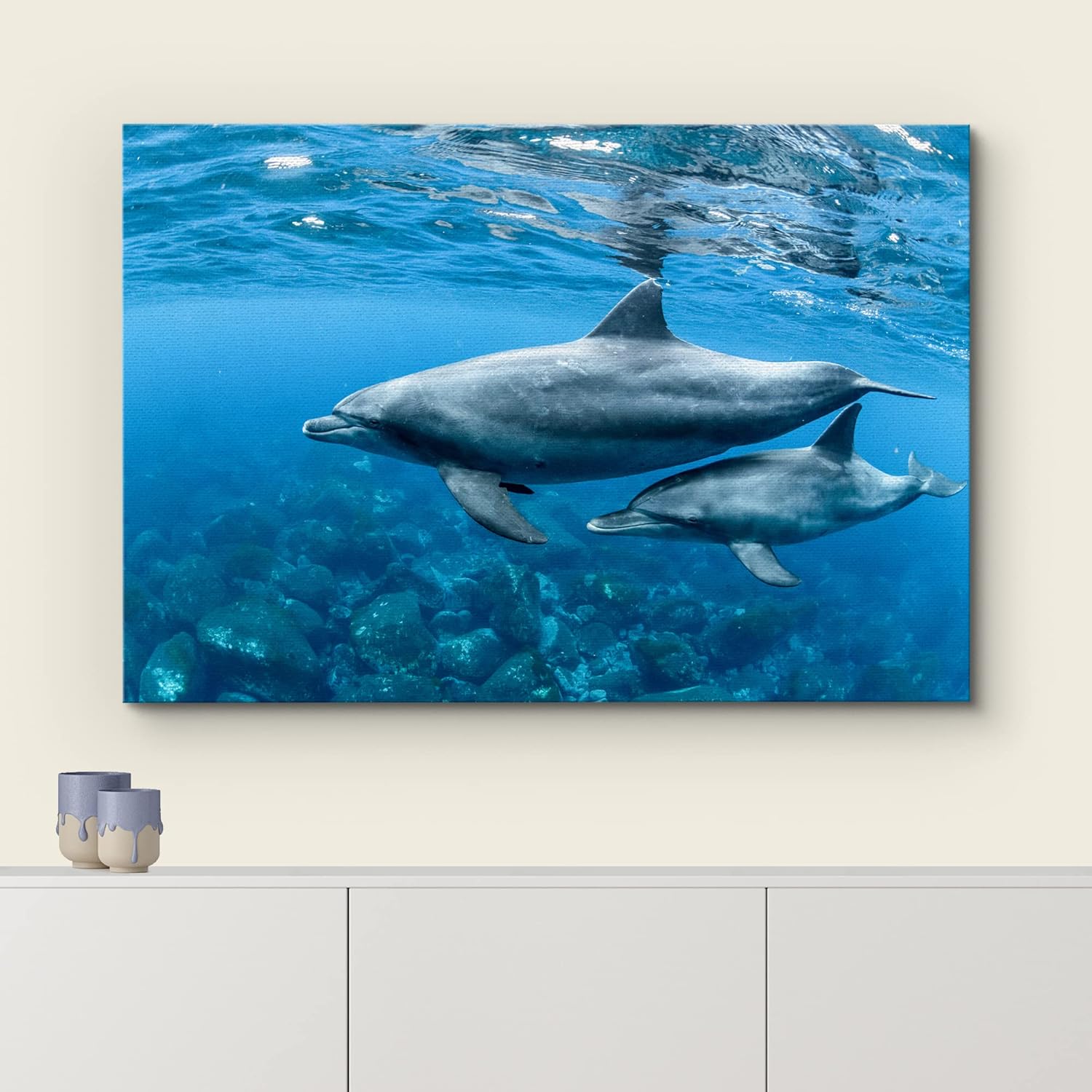 wall26 Canvas Print Wall Art Tropical Ocean Sea Underwater Dolphin Duo Nature Animals Photography Realism Rustic Scenic Landscape Wilderness Earth Colorful for Living Room, Bedroom, Office - 12"x18"