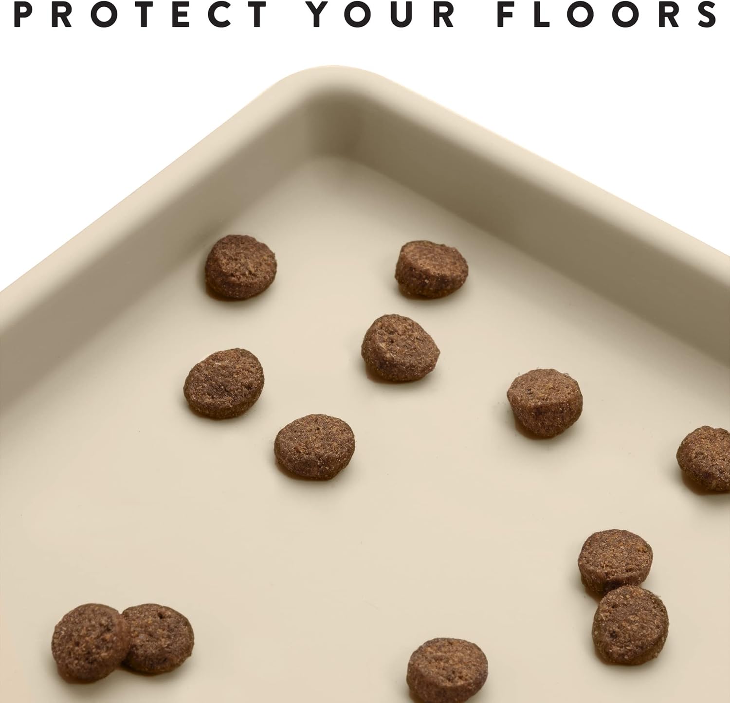 CatGuru Cat Food Mat, Small & Large Pet Feedingd Mat, 100% Waterproof Cat Mats for Food and Water, Silicone Mats for Pet Bowls, Non-Slip Placemat for Water Bowl or Fountain (Small, Sand)