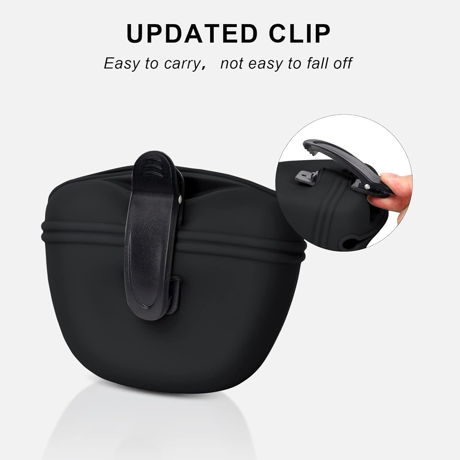 - ๐Silicone Dog Treat Pouch๐ - The silicone dog treat pouch is made of food grade silicone,it can contact dry and wet food directly,safe and healthy. Itโs easy to on and off with one hand, automatic close after feeding.With upgrated clip,It is easy to carry,not easy to fall off.Dish washer safe and easy to clean,The large opening design and soft silicone material make the pet pouch easy to reverse to clean the inner easily and thoroughly.