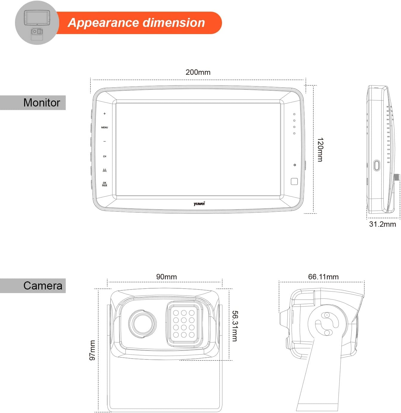 - ❆Stable & Long Range Signal Strength: >>The 2.4GHz proprietary wireless communication provides a reliable digital connection with no lag between the camera and monitor . Tested for up to 80ft at high speeds and extended range of up to 328ft in open spaces. Compatible with RVs, motorhomes, trucks, semi-trailers, box trucks, shuttle buses, commuter buses, and tractors.