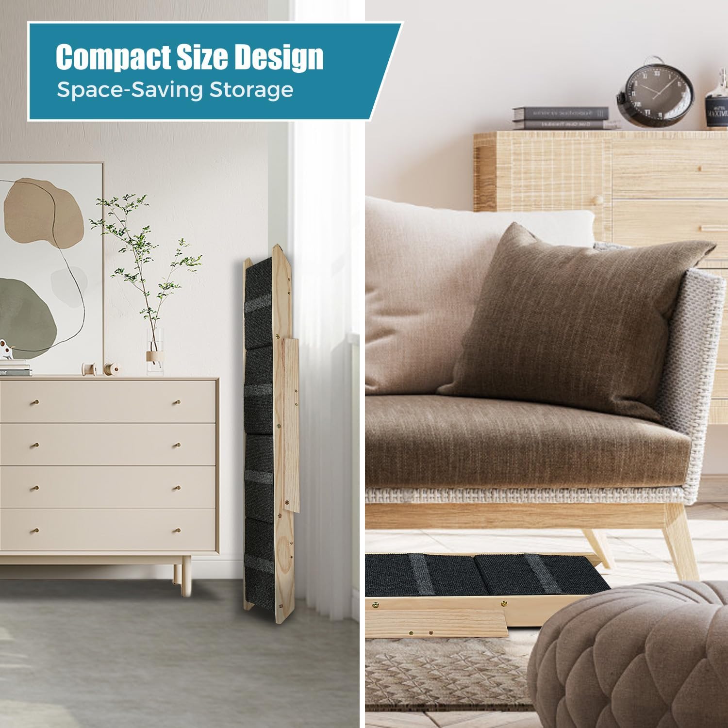 - SOFT SURFACE: Each of the steps of the pet stairs is covered with a soft carpet fabric to prevent your furry friends' paw pads from injury and avoid slipping in ramp mode.