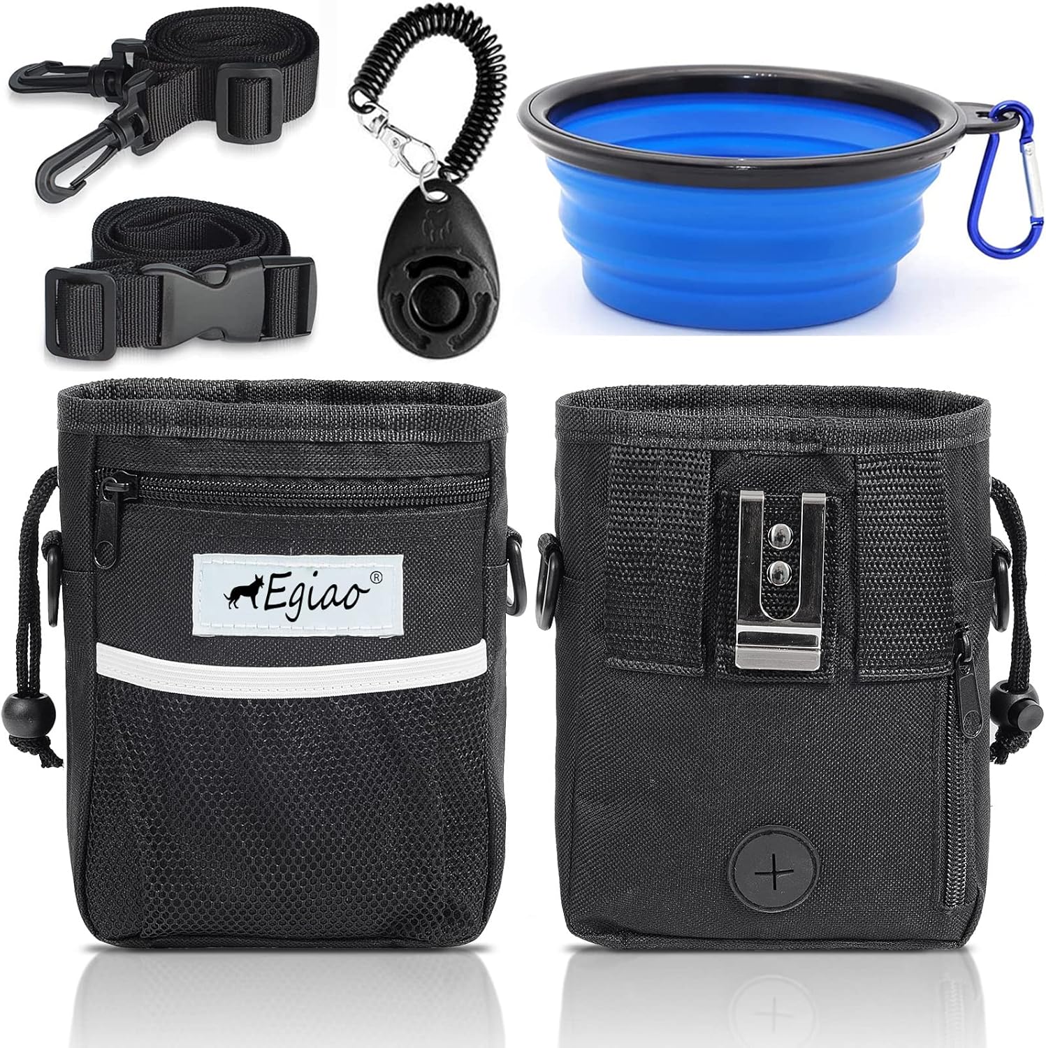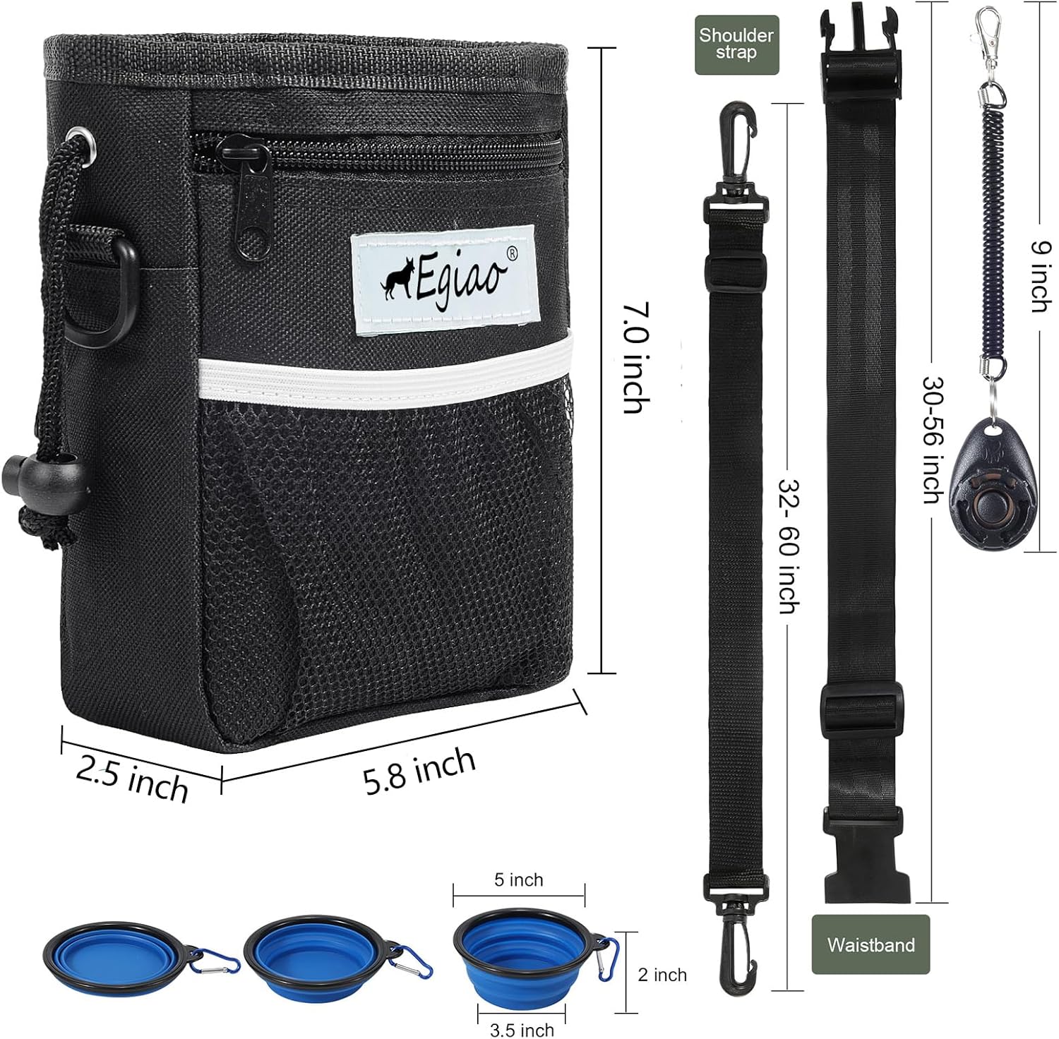 - ๐พ5PCS Dog Training Kit: Includes a multifunctional dog training pouch, a collapsible dog bowl, a training clicker, a waist strap, a shoulder strap