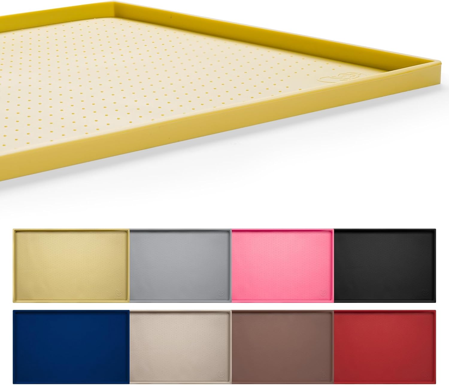 Hubulk Dog Feeding Mat,100% Waterproof Food Grade Silicone Pet Food and Water Bowl Placemat,Dishwasher, High Raised Edge to Prevent Spills,Nonslip Tray to Stop Messes on Floor(28"x18"x0.8", Yellow)