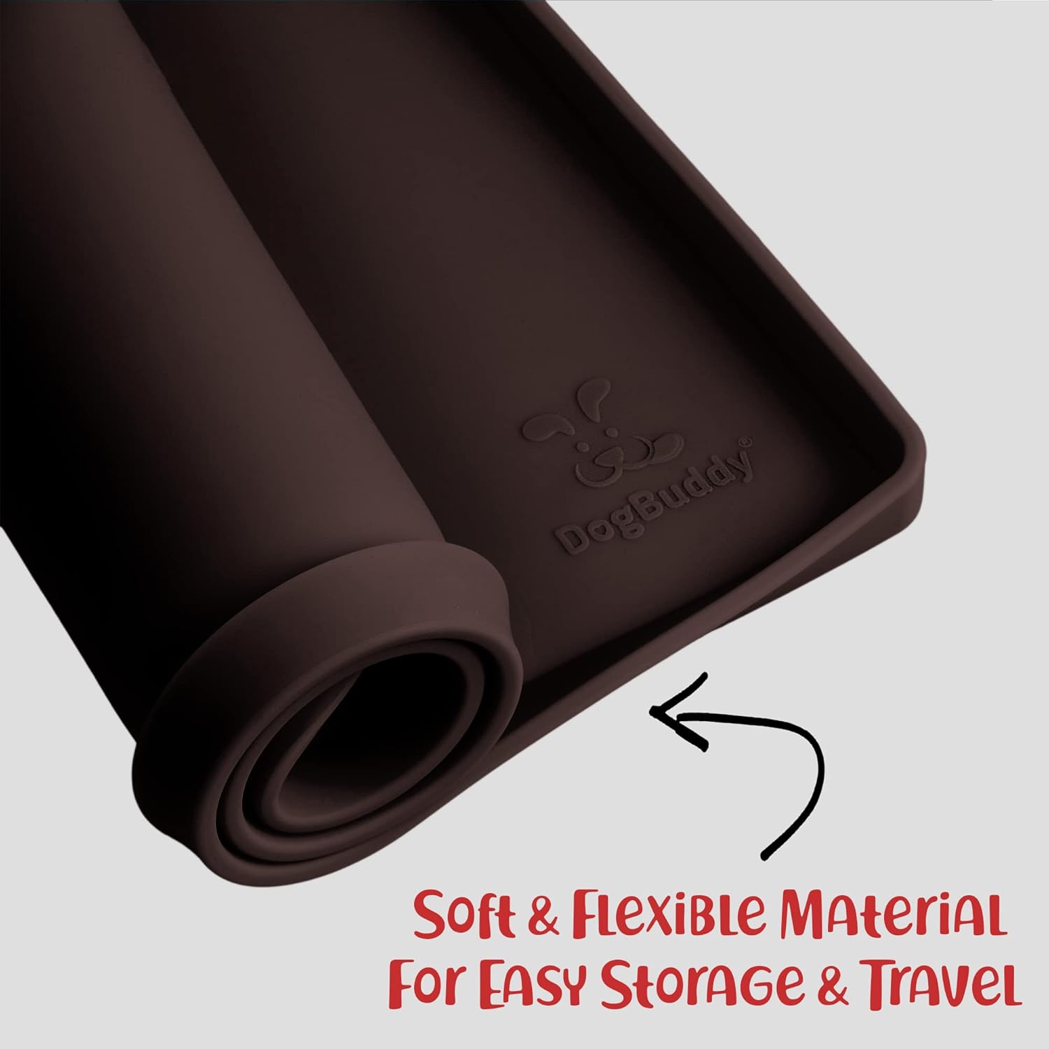 DogBuddy Dog Food Mat – Waterproof Dog Bowl Mat for Food and Water, Silicone Pet Feeding Mats for Floors, Non-Slip Placemat with High Edges for Dogs Bowls, Puppy Essentials (M: 21” x 14”, Coffee)