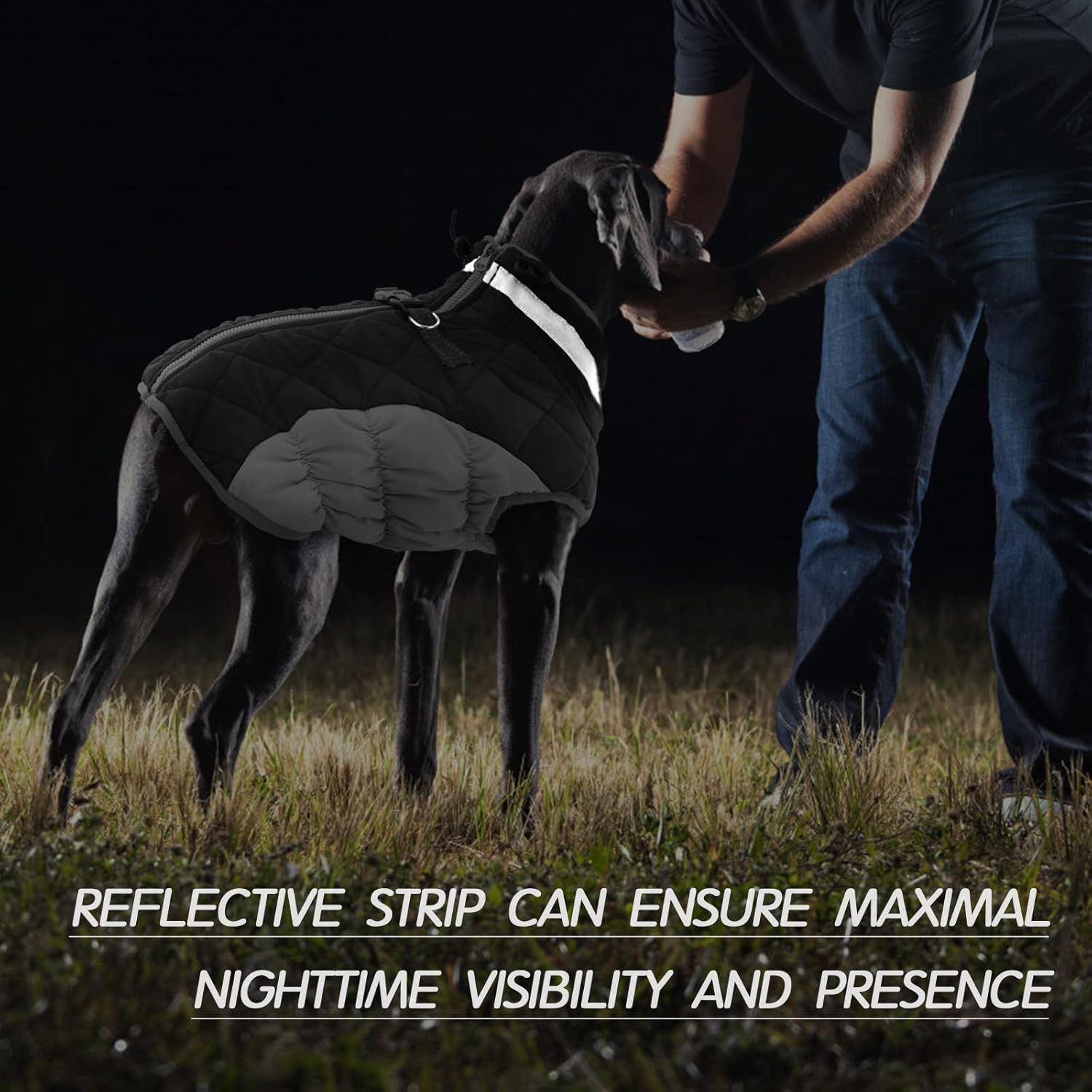FUAMEY Dog Coat for Large Dogs,Waterproof Dog Winter Jacket with Harness Built in Puppy Cold Weather Coats Reflective Pet Vest with Zipper Warm Fleece Dogs Snowsuit Windproof Black XXXL