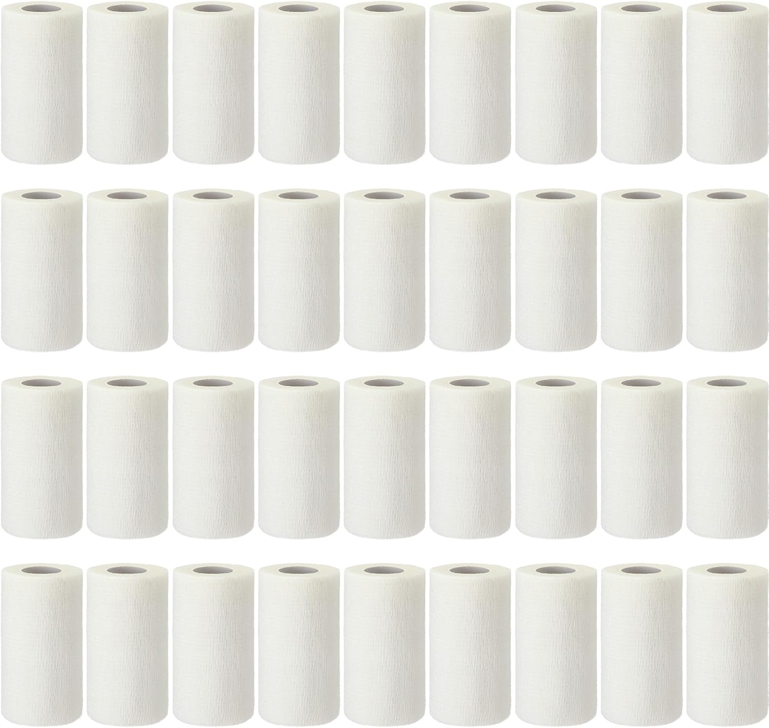 Treela 36 Pcs Self Adherent Bandage 4" X 5 Yard Wrap Breathable Cohesive Bandage Elastic Adhesive Tape for Stretch Athletic Sports Wrist Ankle(White)