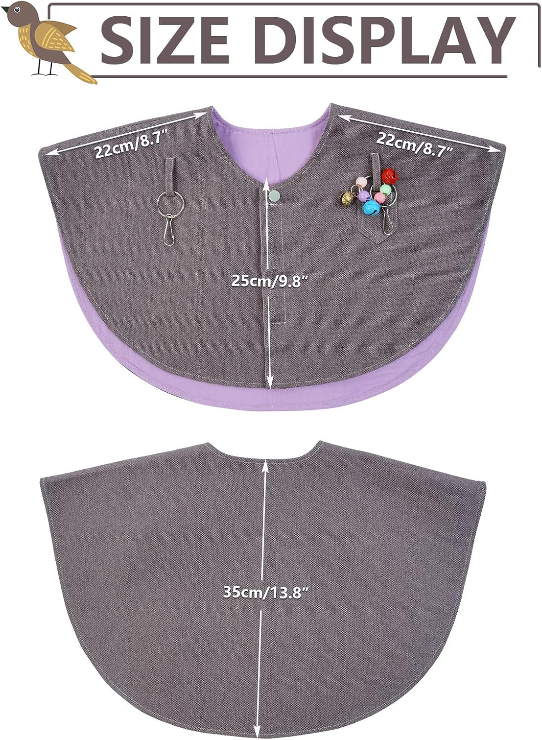 - Easy to Take on/off: Pet bird shoulder poop protector magic tape design make you can wear it and take off easy and quickly, You can wear it out of your coat directly; Shawl Width 47cm/18.50IN, height 32cm/12.60IN, Shawl neck 48cm/18.90IN