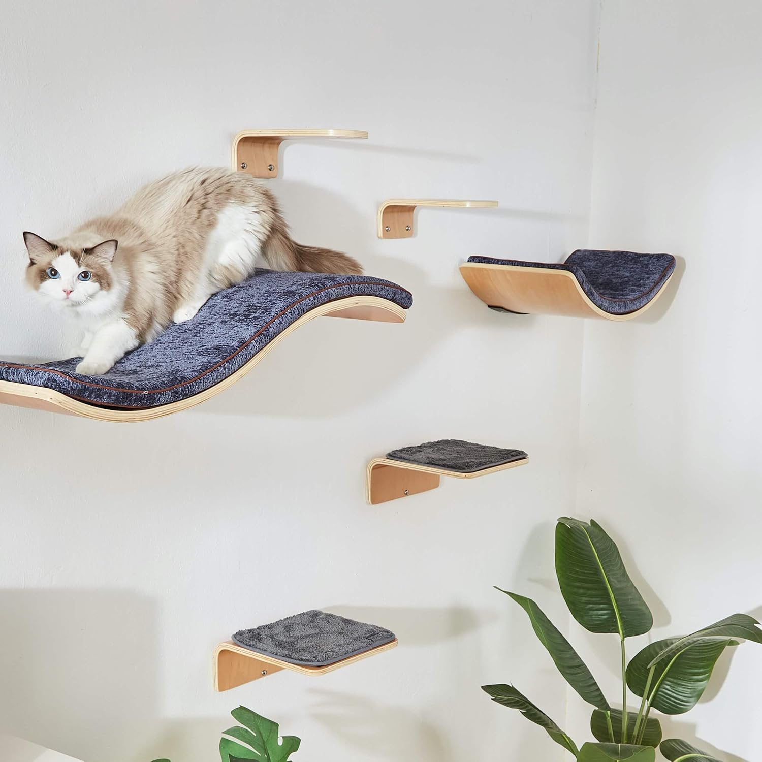 - CURVED DESIGN - Lotus Leaf Design cat wall bed is based on the way cats like to rest. Looks great no matter where it is installed in the home and doesn't take up floor space. Personalize your cat climbing wall today!