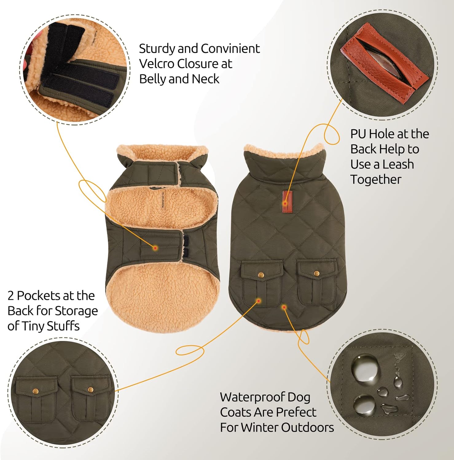 - USE THE LEASH TOGETHER WITH THE DOG COAT - We add a stylish brown PU hole at the back of the dog jacket and so you can use the leash together with the winter dog jacket to keep your pet always close at you.