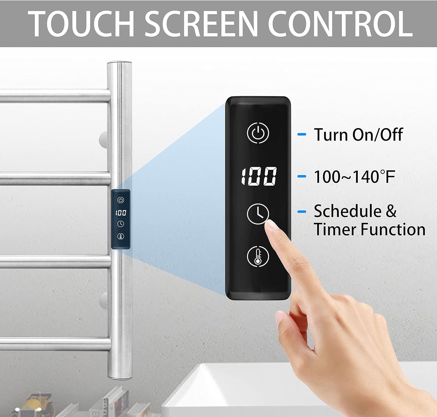 - [PREMIUM QUALITY WITH ELEGANT LOOK]: The bath towel warmer is made of durable 304 stainless steel, easy to clean and durable use. IP56 Waterproof standard and wall-mounted design maximizes your floor space.