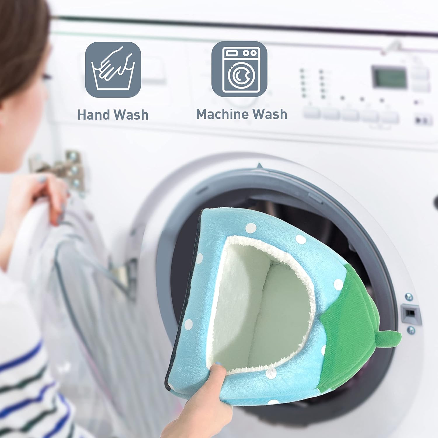 - 【Warm & Cozy】 The small animal bed or hideout comes with a removable pee pad inside, and the non-slip bottom ensures it stays in place. With the super soft plush fabrics, your little furry friends will feel cozy and warm inside their little house. Suitable for small animals such as Rats, Chinchillas, Ferrets, Guinea Pigs, and Dwarf Rabbits etc.