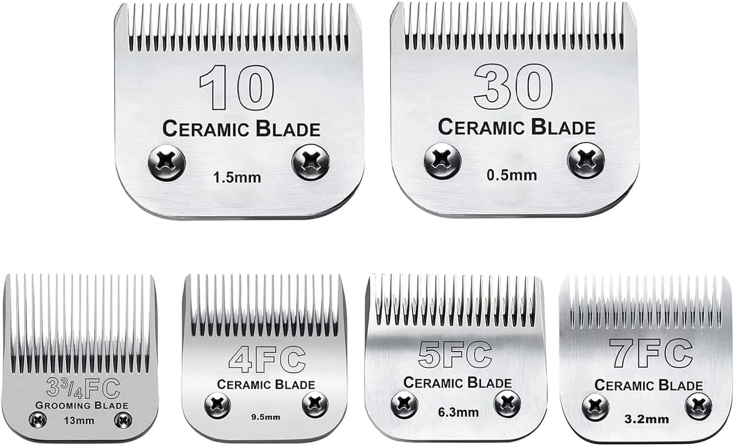 6Pack 10Blades Dog Grooming Replacement Blades Compatible with Andis Pet Clipper/Oster A5/Wahl KM Series Dog Clipper,Ceramic Blade & Stainless Steel Blade (#10+30+5FC+7FC+3FC+4F)