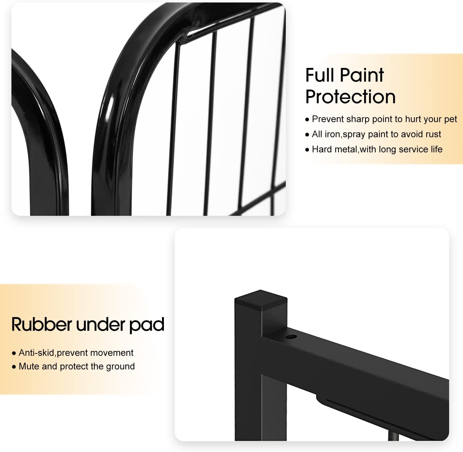 - DURABLE METAL FENCE PANELS: Heavy-duty iron with a rust-resistant finish makes this fence strong and secure. Use the sturdy fence panels as a dog fence outdoor for yard or indoor setup.