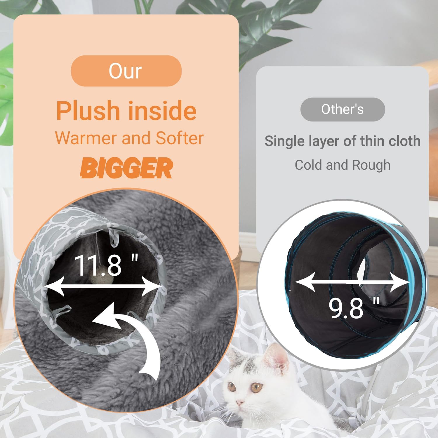 LUCKITTY Geometric Straight Cat Tunnel with Plush Inside,Cats Toys Collapsible Tunnel Tube with Balls, for Rabbits, Kittens, Ferrets,Puppy,Diameter 11.8 Inch