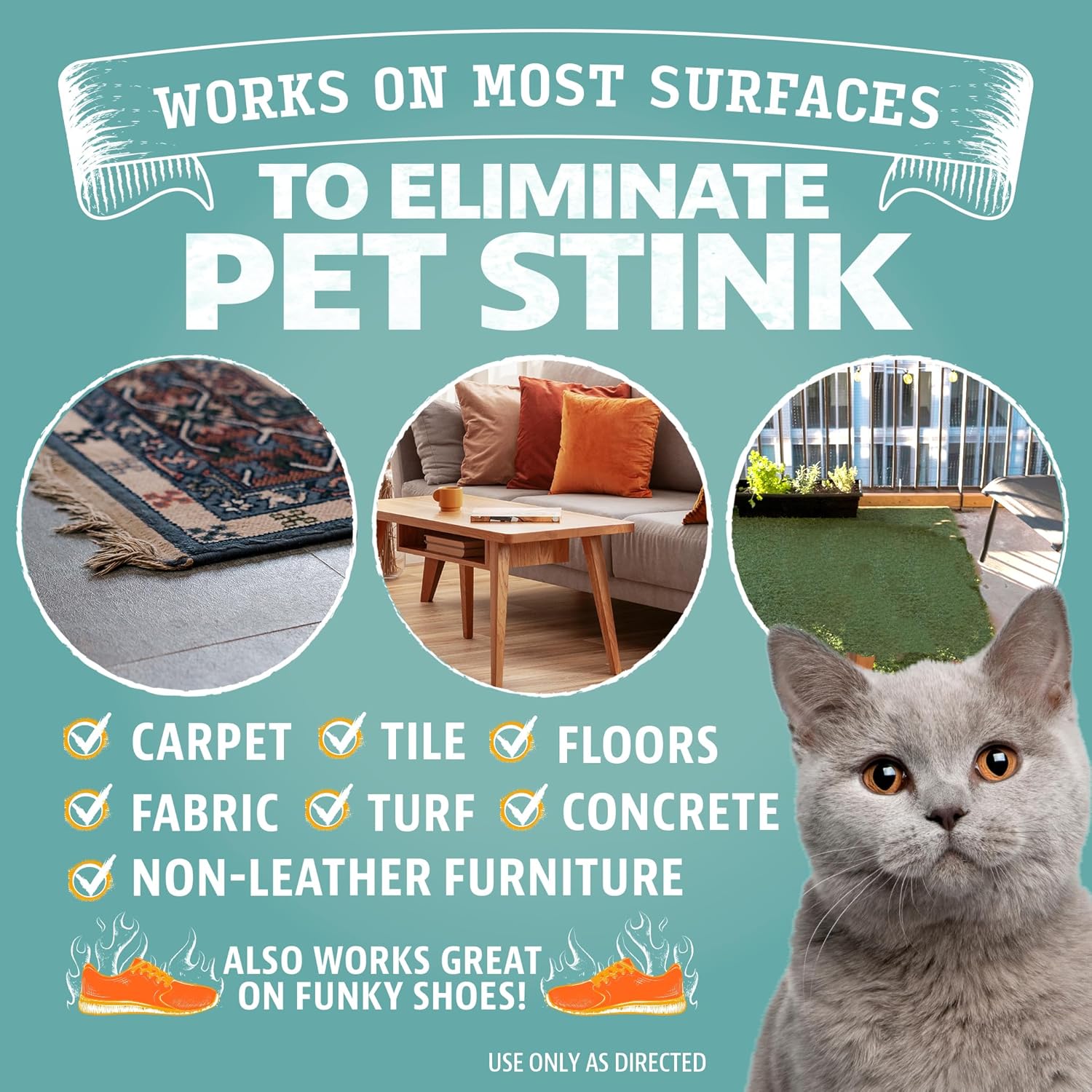 - DESTROYS TOUGH PET ODORS – Tackles strong smells from cat and dog urine, feces, vomit, and more. Works fast to eliminate lingering odors at the source.