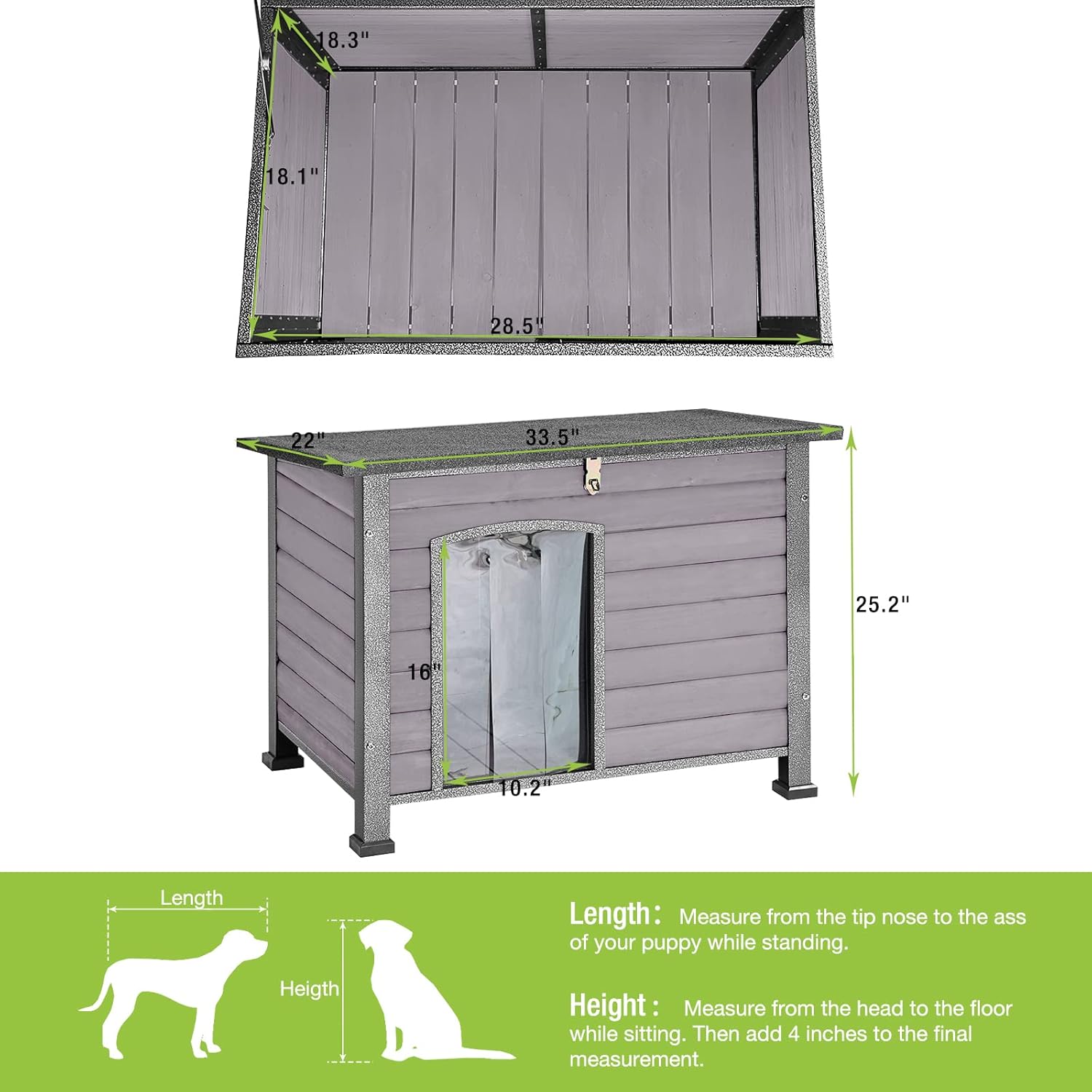 GUTINNEEN Chew Proof Dog House with Metal Iron Frame Outdoor Dog Kennel for Small Medium Large Indoor Dog Cage (33.5" L,Grey Color)