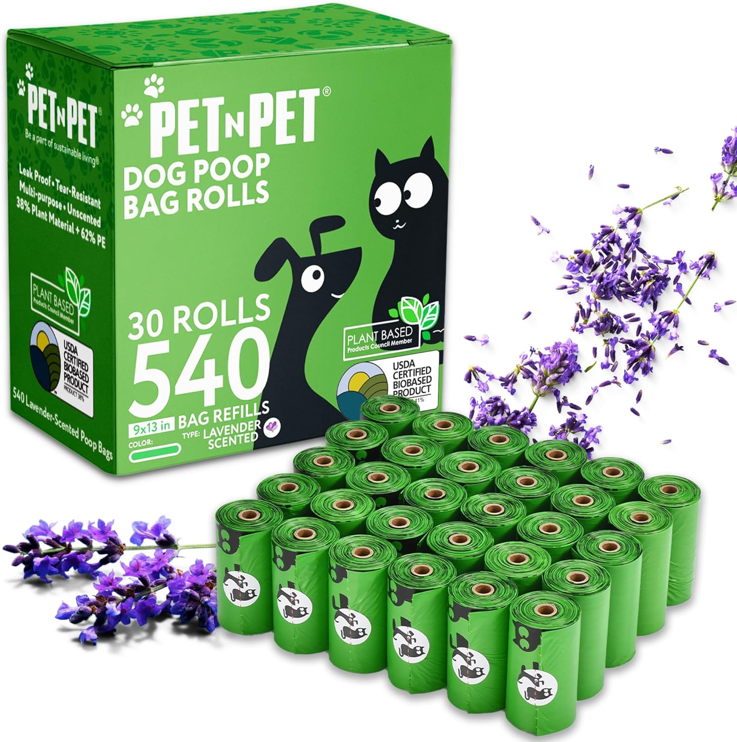 Pet N Pet Poop Bags For Dogs, Green 540 Counts Lavender Scented Dog Poop Bags Rolls, Dog Bag, Pet Waste Bag