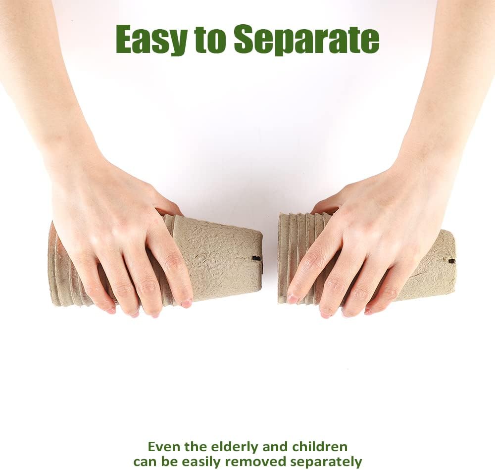 - 1. Safety :Peat pots Made from pulp and plant fibers,The cup body is degradable, no transfer is needed as it can be planted directly without hurting the seedlings.